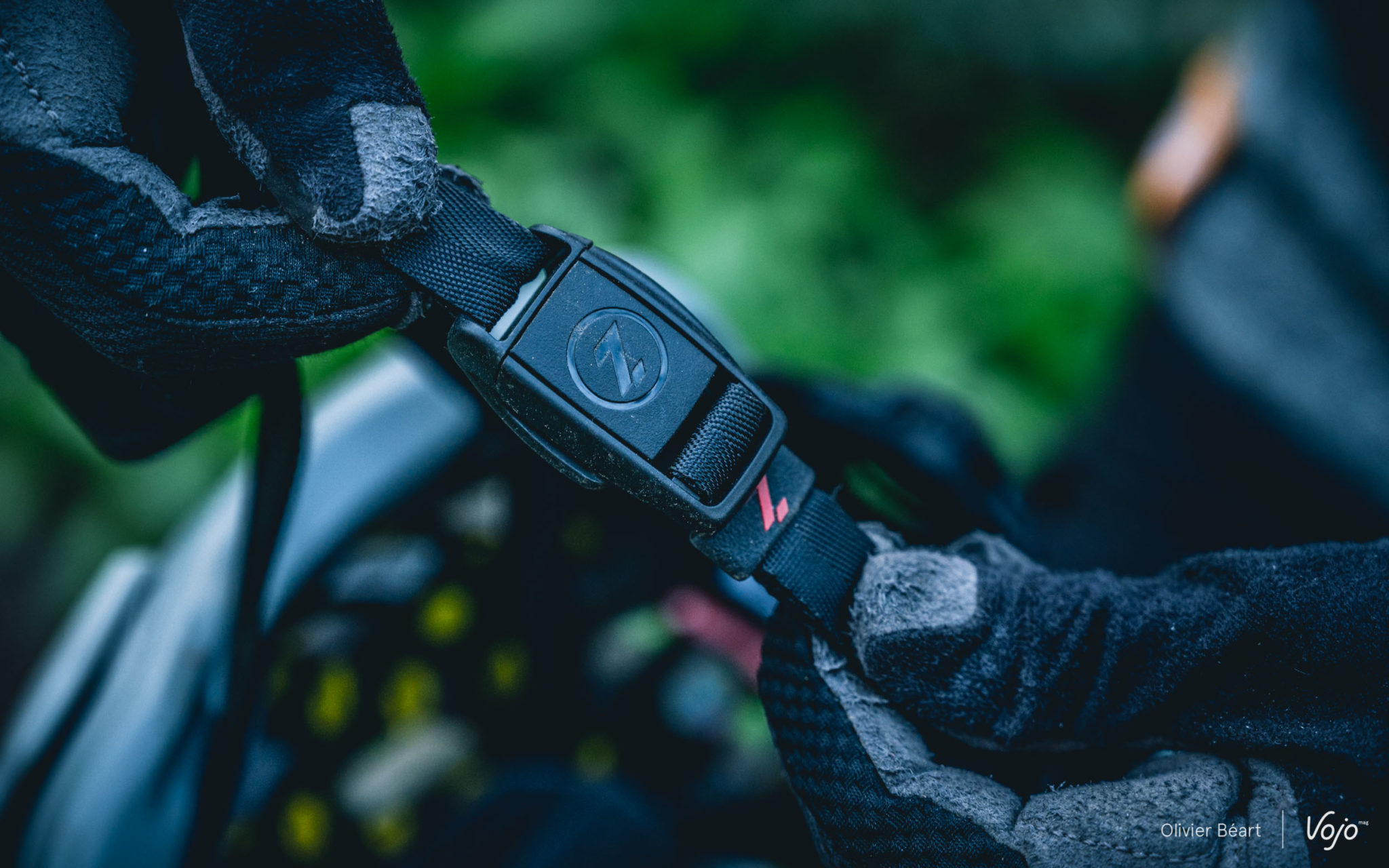 L’extrémité du pied est aimantée à l’intérieur, et on vient le « clipser » sur la patte placée sur le vélo lorsqu’on veut faire tenir sa machine. Et quand on roule, le pied compact et léger se retire en une fraction de seconde et se range soit sur le vélo (avec un système optionnel dédié qui se place sur le porte-bidon ou au moyen du petit scratch fourni), soit dans la poche du maillot ou du sac à dos.