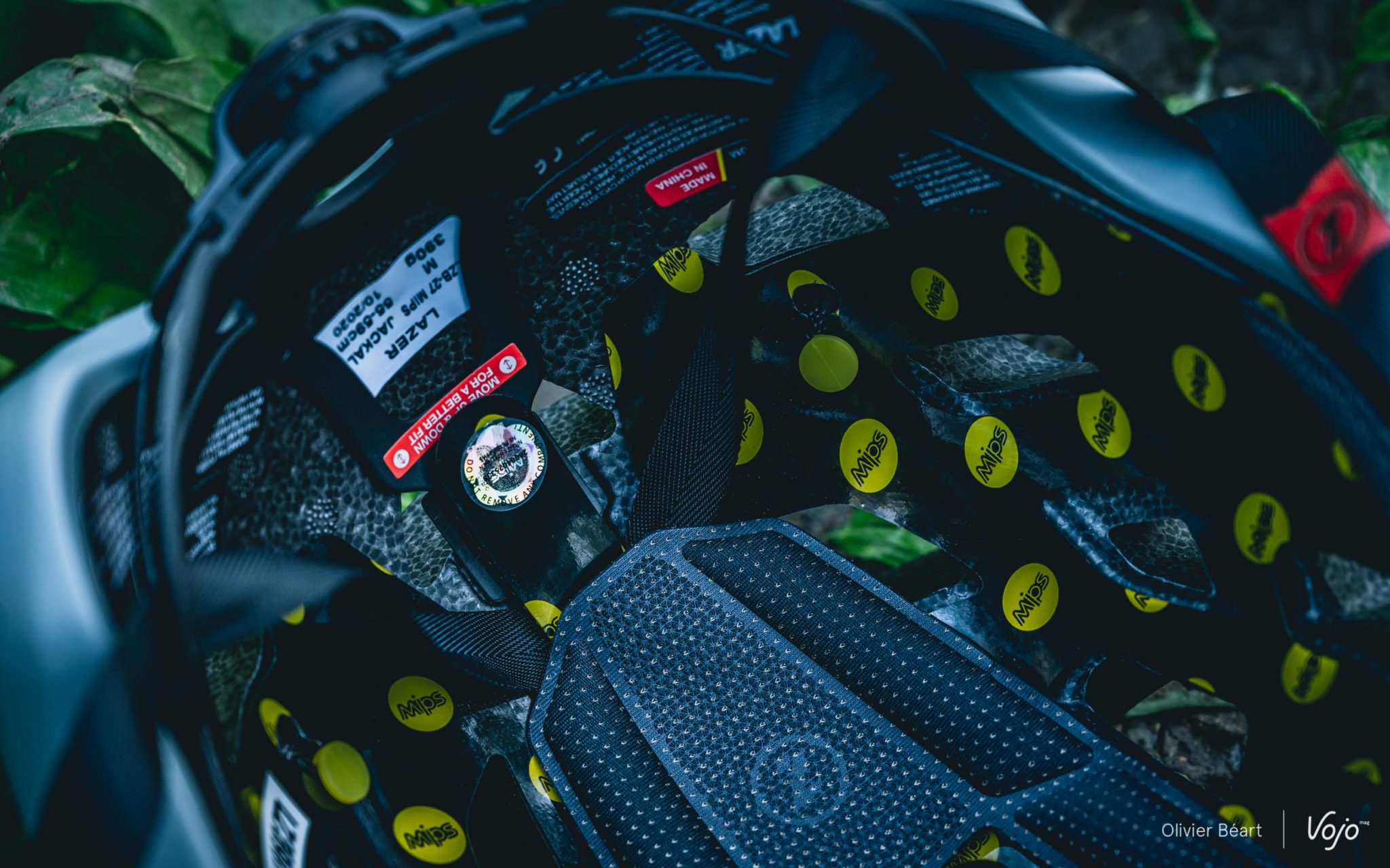 L’intérêt du système Mips reste sujet à débat. Il est censé mieux protéger la tête des forces en rotation lors d’un impact, en offrant une interface supplémentaire entre la coque du casque et le crâne. Vu le faible supplément de poids et de prix, à ce niveau de gamme, on se dit « pourquoi s’en priver ». Nous n’avons pas testé la version sans Mips pour comparer et voir si ce système joue aussi un rôle dans l’agrément global du port du casque, mais d’expérience nous n’avons jamais senti de différence flagrante à ce niveau.