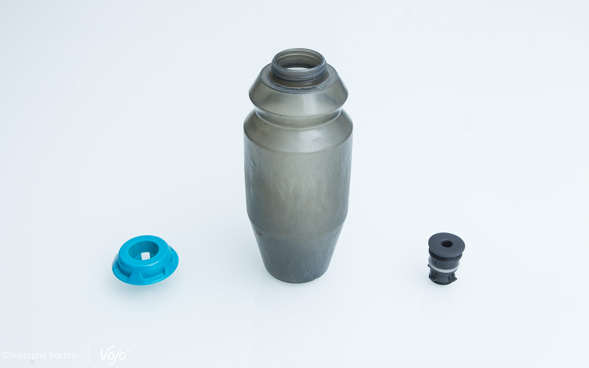 Pour ce faire, les bidons Abloc Arrive S (550ml, le plus petit, testé ici) et L (le grand frère de 710ml) sont profilés tant du côté de la base que sur le dessus. Le but est double : faciliter l’insertion dans le support tout en favorisant la cohabitation du bidon avec le cadre, l’amortisseur ou tout autre élément. Autre détail intéressant, les Arrive n’affichent aucune décoration ni aucun marquage qui pourrait s’altérer au fil des passages dans le porte-bidon et nuire à l’esthétique. La seule touche de couleur vient du bouchon, disponible en 9 couleurs.