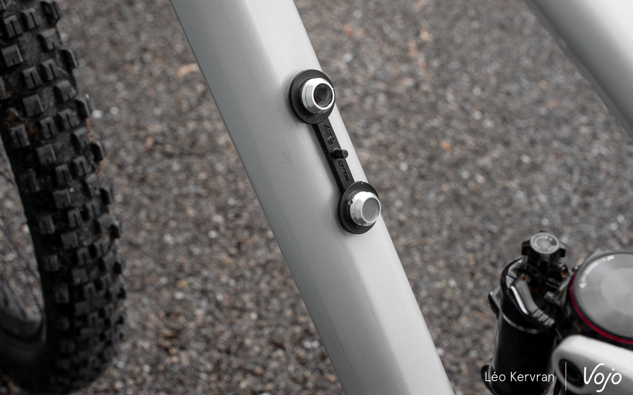 Au montage, on constate que sur notre Rockrider alu de test, dont le tube diagonal est généreusement dimensionné mais tout de même pas énorme, les repose-pieds passent vraiment très près du cadre. Heureusement, il existe des adaptateurs qui permettent d’écarter les pose-pieds et le site de la marque comporte un guide très bien fait pour savoir si son vélo est compatible. Mais, en gros, avec les fameuses bagues d’adaptation, le Mac Ride est compatible avec quasi tous les vélos du marché, y compris les vélos à assistance électrique et batterie intégrée.