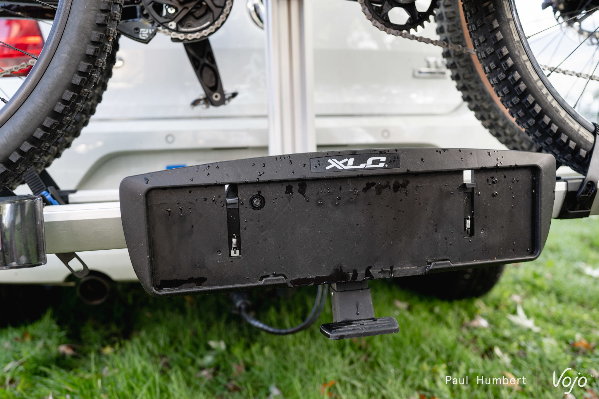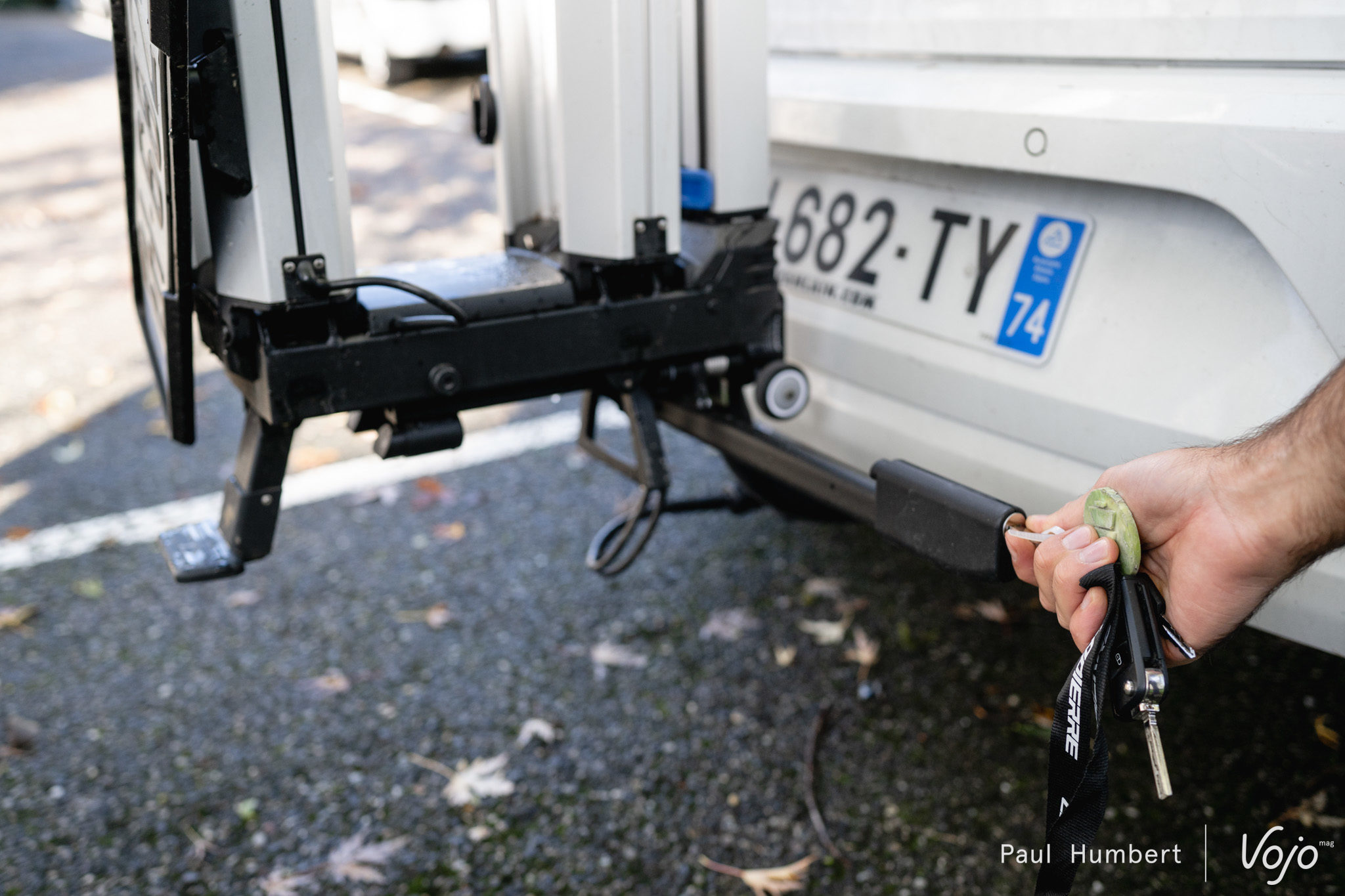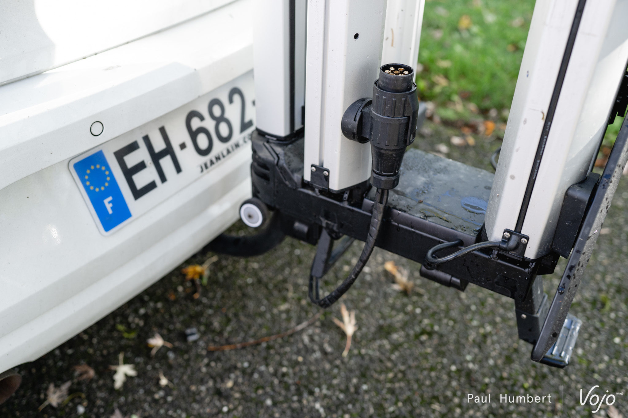 Bon point également pour la pédale qui permet de faire basculer les rails et le bras afin d’accéder au coffre et pour deux autres éléments encore plus anecdotiques (mais à ce prix, tout compte) : un clip de rangement pour le raccord électrique et un système à ressort facile d’utilisation mais fiable pour monter la plaque d’immatriculation.