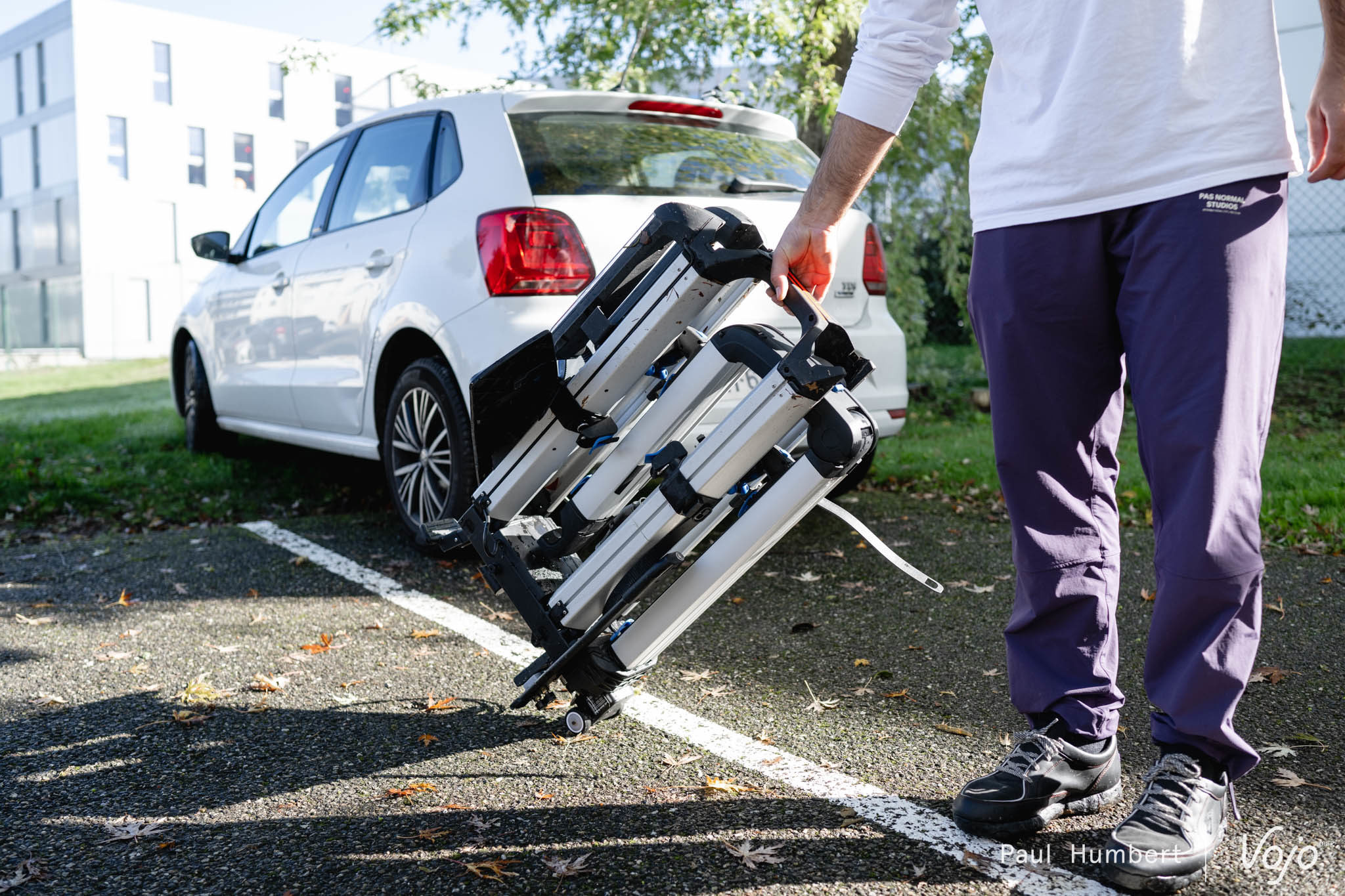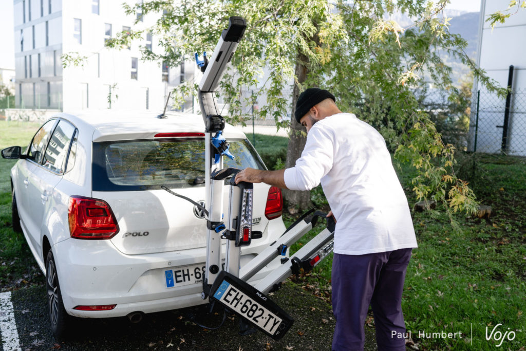 Première étape, le déballage et l’installation sur la voiture. D’emblée, l’Almada Work-E se distingue avec cette conception autour d’un grand bras en aluminium, qui remplace l’habituel arceau. C’est spectaculaire, ça lui donne une allure très moderne et c’est aussi plutôt sécurisant puisque le vélo placé côté coffre est complètement enfermé dans le « U » que forme le bras une fois verrouillé.