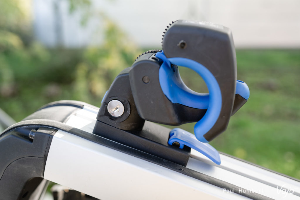 - Un verrouillage par clé de la pince qui maintient le cadre pour chaque vélo. On a donc 3 serrures indépendante au total sur l’Almada Work-E (avec celle qui sécurise le porte-vélo sur la boule d’attelage).