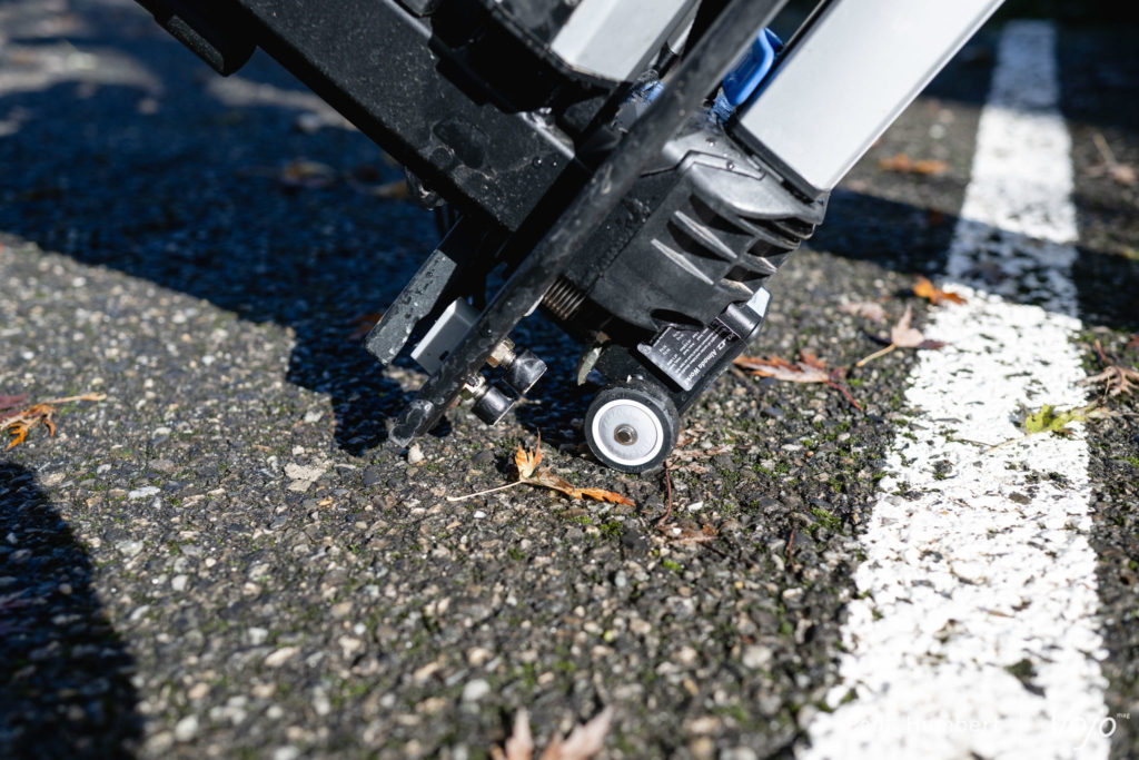 En dehors de ça, on note que l’installation sur la boule est très facile, d’une part grâce à l’encombrement réduit de l’ensemble en position repliée (il a en plus la bonne idée d’être doté de roulettes pour faciliter son transport) et d’autre part grâce à la longue tige qui permet d’accéder facilement à la serrure antivol, sans avoir à se contorsionner.