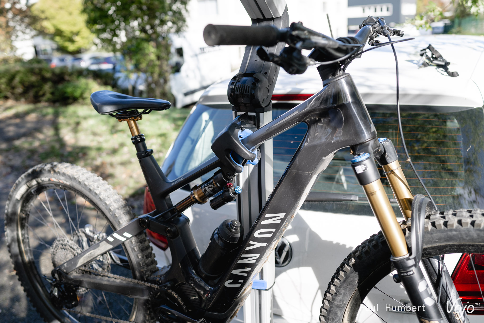 - des rails larges (pour pneus jusqu’à 3″) mais avec une petite gorge pour les pneus de route, et suffisamment long pour accueillir sans problème des VTT à grand débattement.