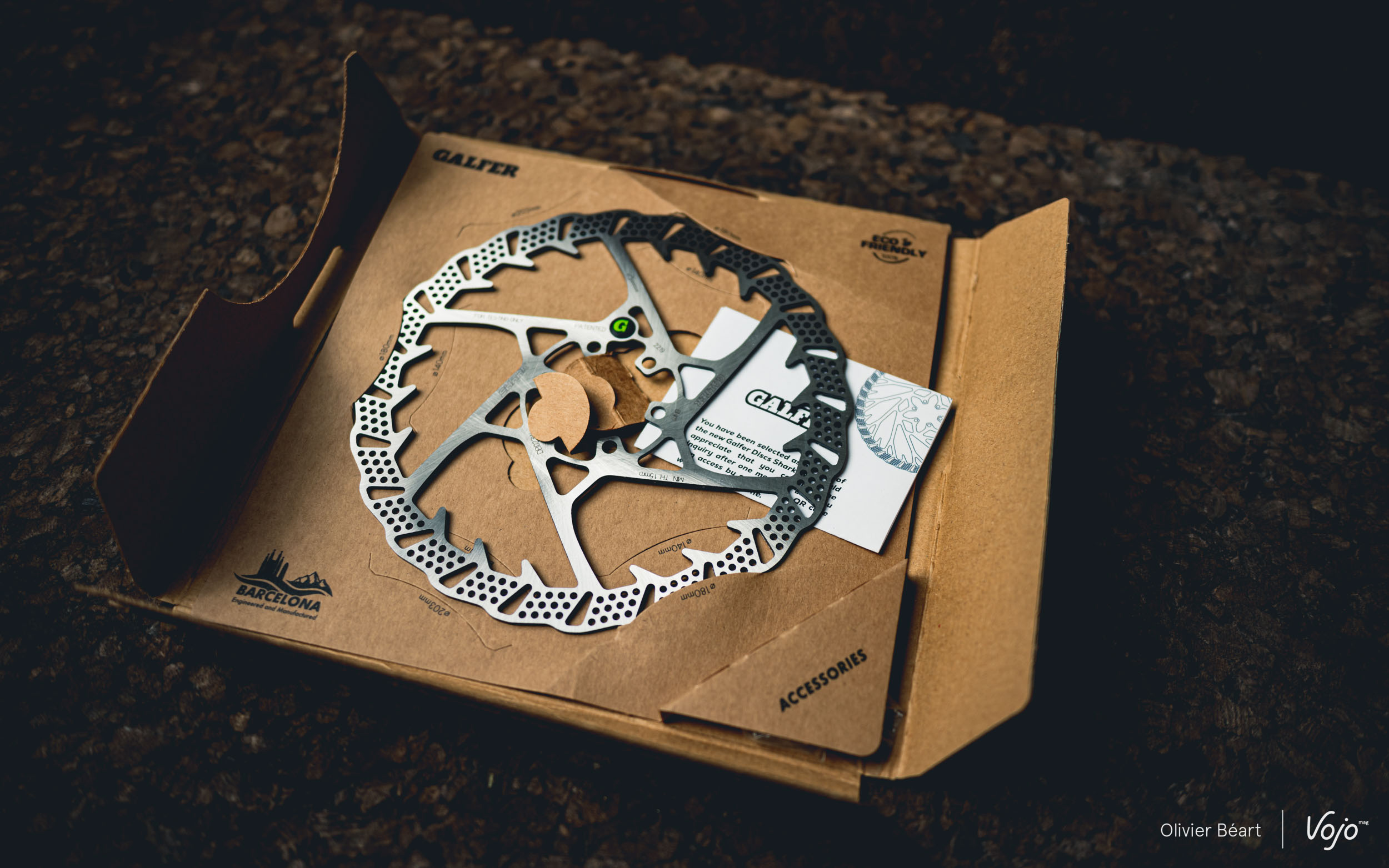 Au niveau du montage, on apprécie l’effort de l’emballage en carton recyclé et recyclable, ainsi que la présence de 6 vis en inox de qualité pour fixer les disques. La qualité perçue est d’emblée excellente et quand on pose les disques sur une table, on se rend compte de leur planéité absolument parfaite. Ne rigolez pas, il arrive que des disques soient déjà voilés avant même d’être montés. Quant au montage, il est justement facilité par la rectitude du disque, qui évite les petits frottements agaçants avec les plaquettes sur une partie du disque seulement.