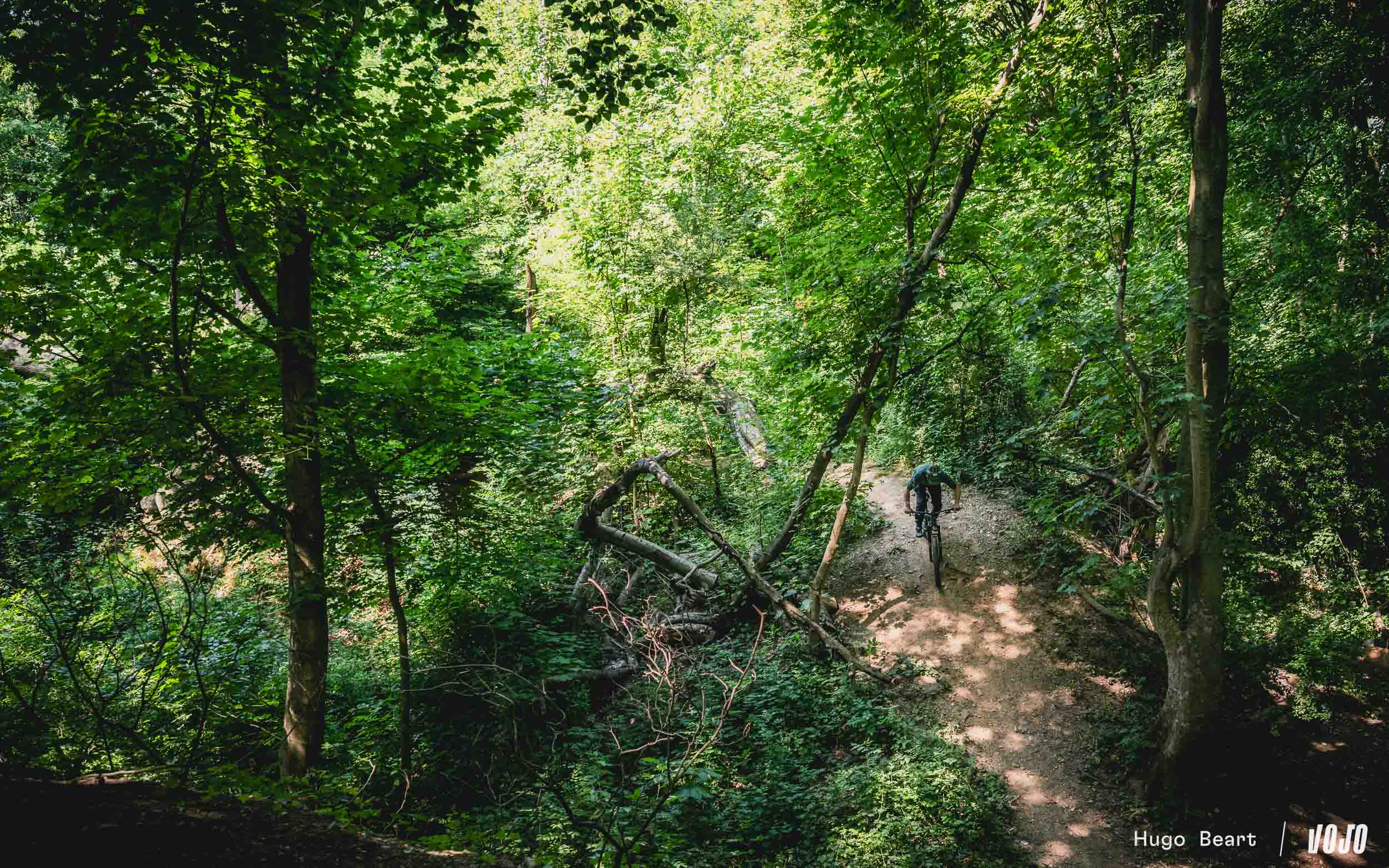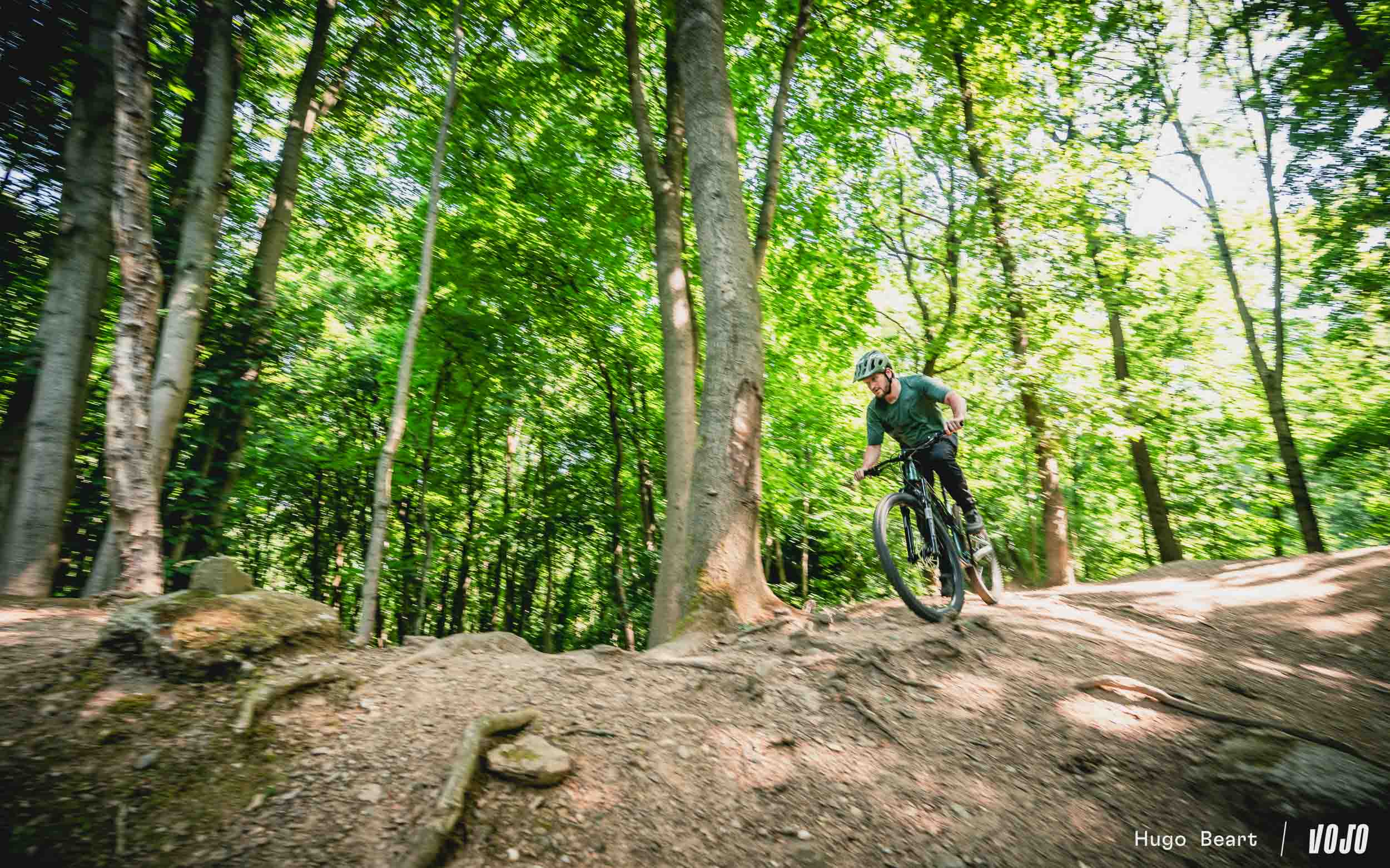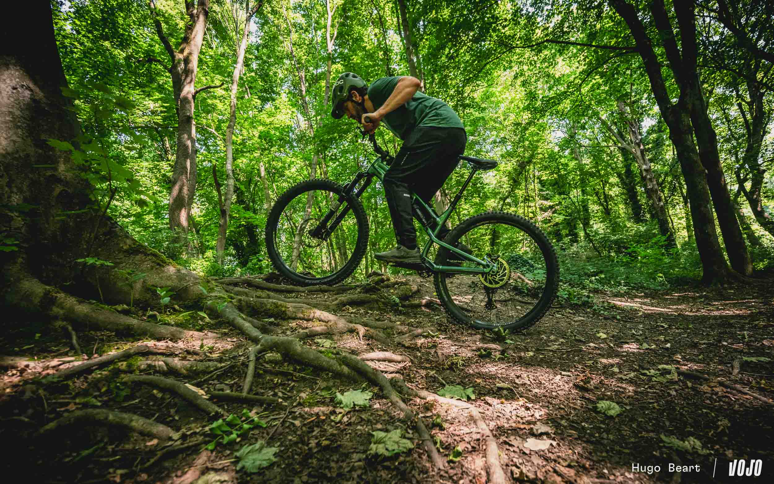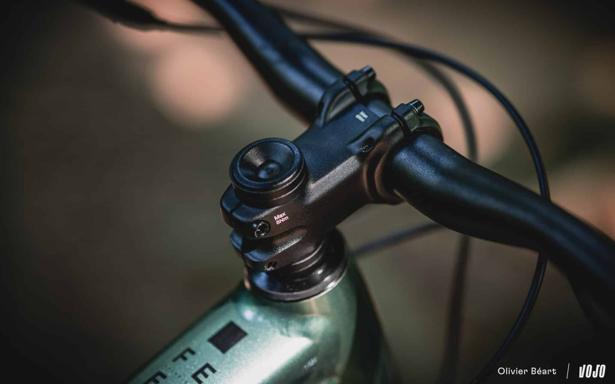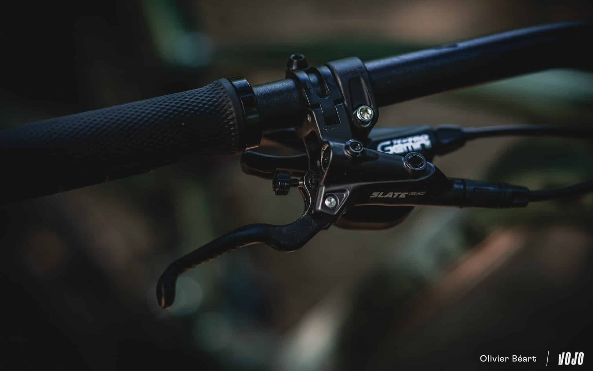 En côte, quand on grimpe au train, on remarque que la suspension ne pompe pas trop, mais on aurait tout de même apprécié avoir un levier permettant de durcir la compression. Pas un blocage complet, mais une position qui évite à l’amortisseur de s’enfoncer trop quand la pente devient forte et qu’il y a des obstacles ou, pire, de petits cuvettes où il a tendance à consommer beaucoup de son débattement. Néanmoins, le grip dans les côtes techniques est bon et on peut se lancer à l’assaut de montées complexes avec de bonnes chances d’arriver en haut.