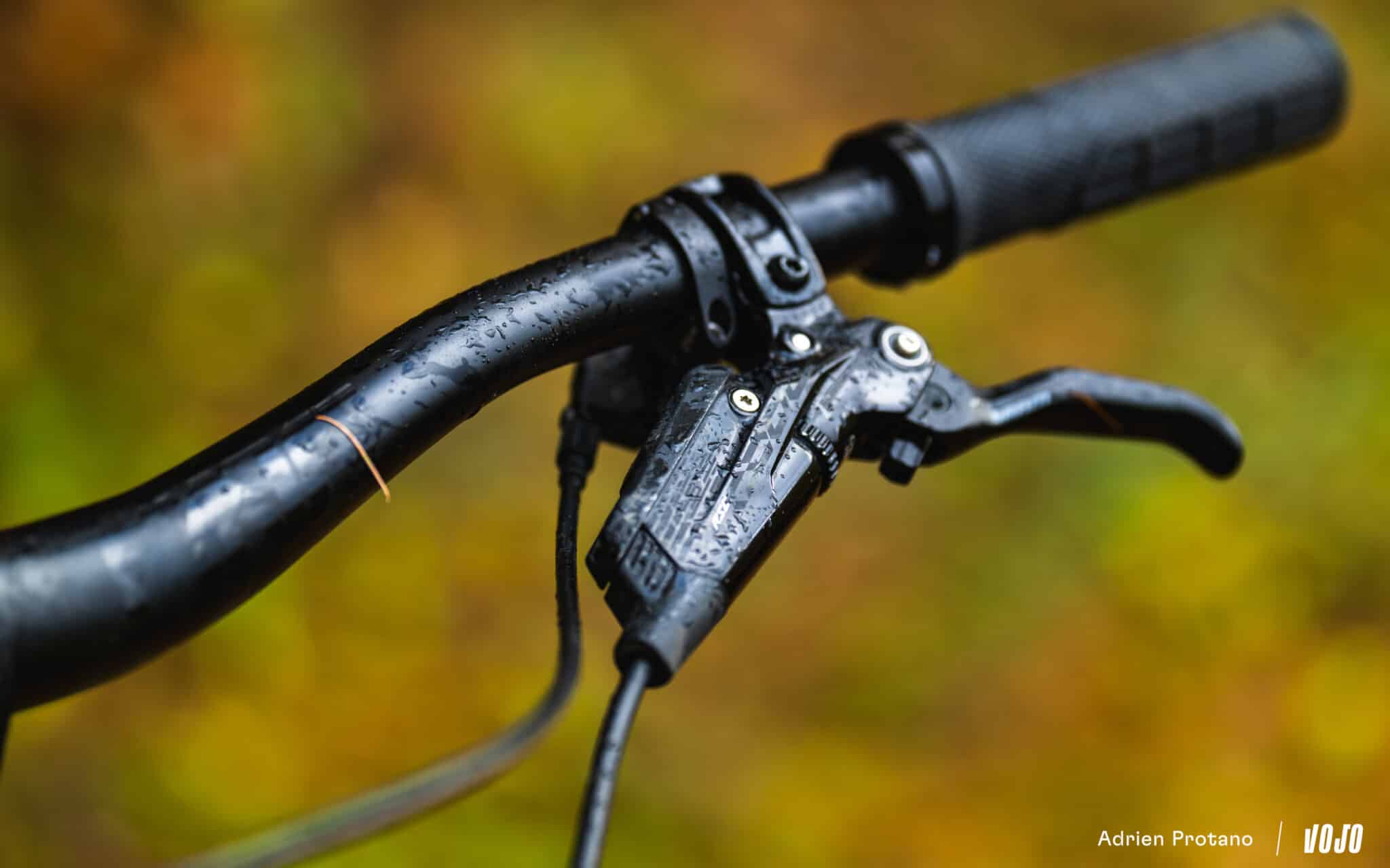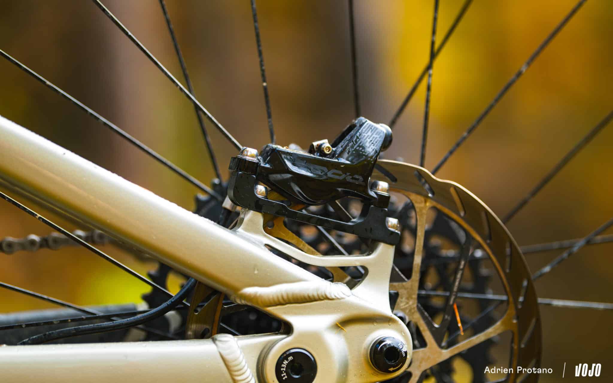 Les freins viennent de chez Sram également, avec des Code RSC en disques HS2 de 200 mm de diamètre. Comme d’habitude avec les freins Sram, on aime ou on n’aime pas le toucher mais avec ces disques, les performances et l’endurances sont tout à fait correctes pour le programme du vélo.
