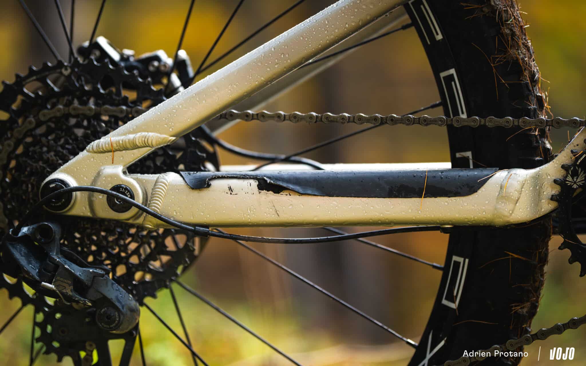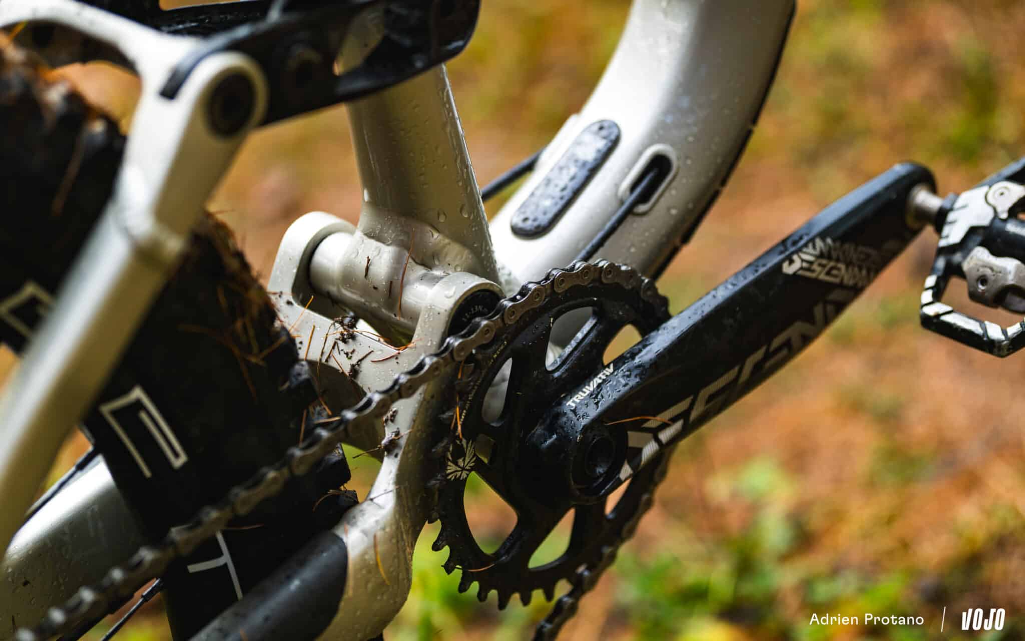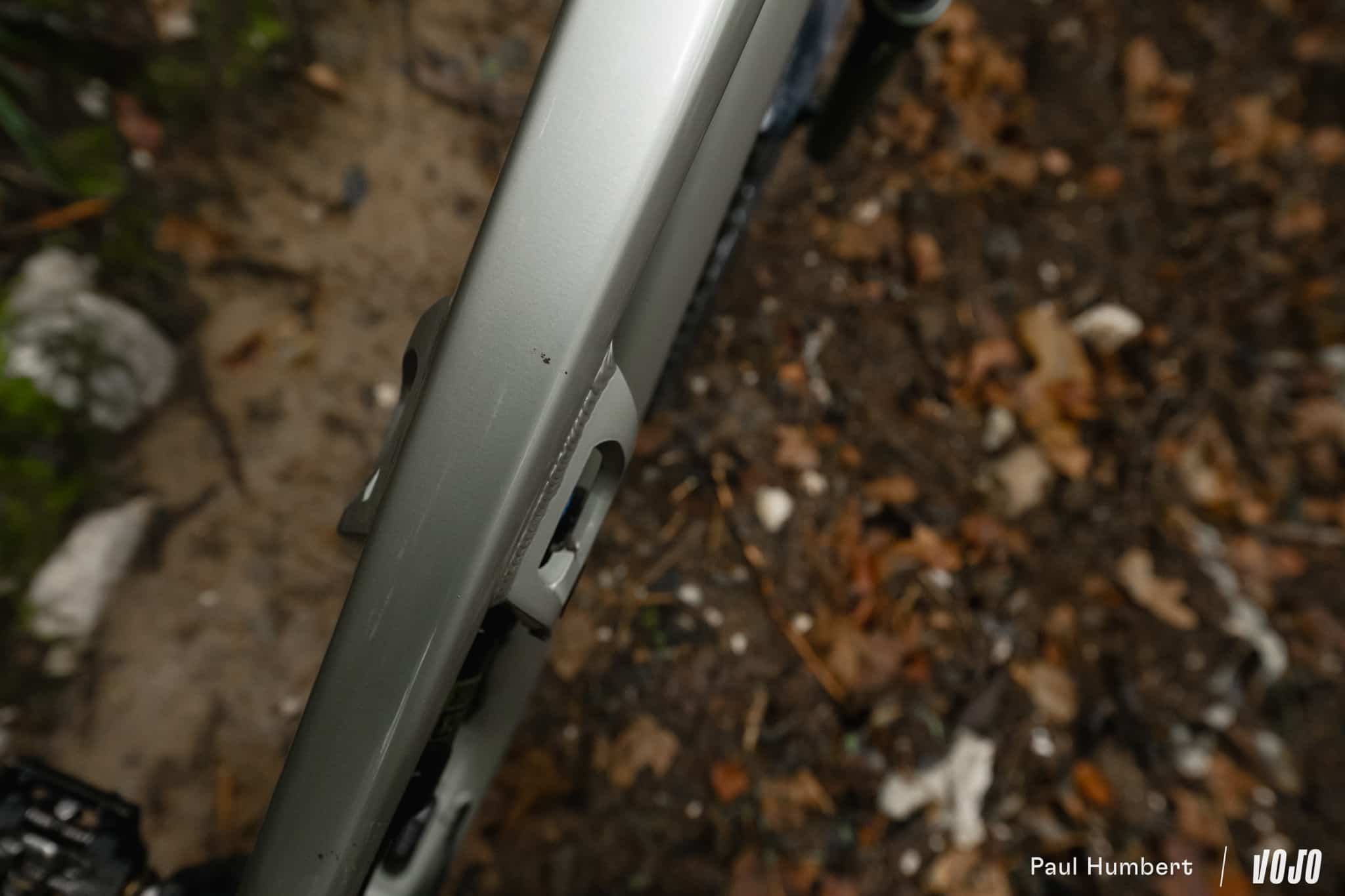 L’architecture de suspension qui nous inquiétait avant l’essai ne nous a pas posé de problèmes de fiabilité au cours de ces plusieurs mois de test mais nous avons remarqué que les vis de suspension avaient tendance à se desserrer un peu, notamment les différents points d’attache sur le triangle avant. Un contrôle régulier est de toute façon toujours utile, peu importe la marque et le modèle du vélo, mais ici on conseillerait de le faire un peu plus fréquemment qu’ailleurs.