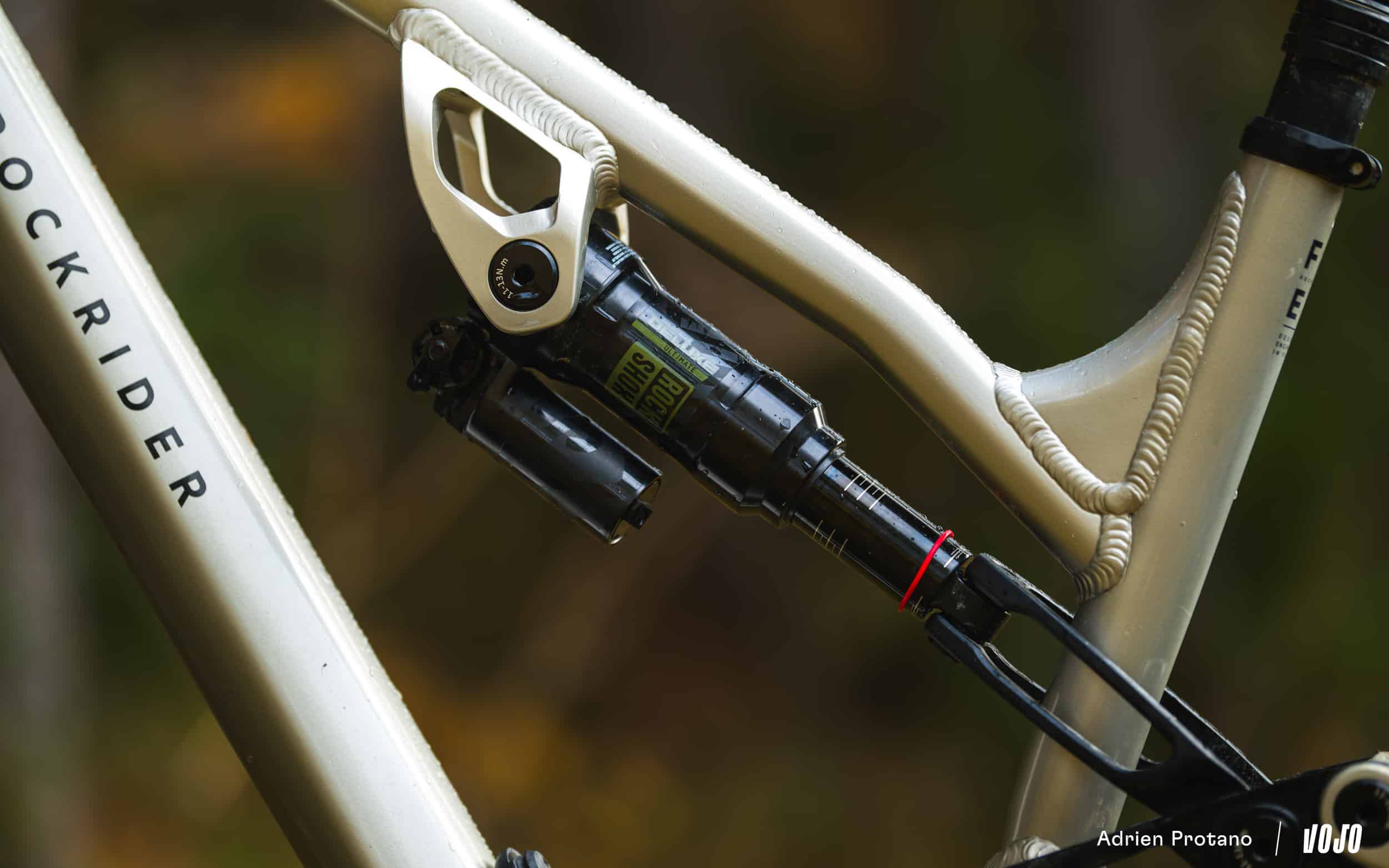 Notez toutefois que le choix du Trunnion n’a pas que des inconvénients : cela permet d’avoir un ressort plus long que sur un modèle de même entraxe mais à oeillet, donc un plus grand volume d’air et moins de pression. Cela améliore la sensibilité et donne un côté un peu plus « linéaire » facile à prendre en main, toutes proportions gardées puisqu’on reste sur un ressort à air, naturellement progressif.