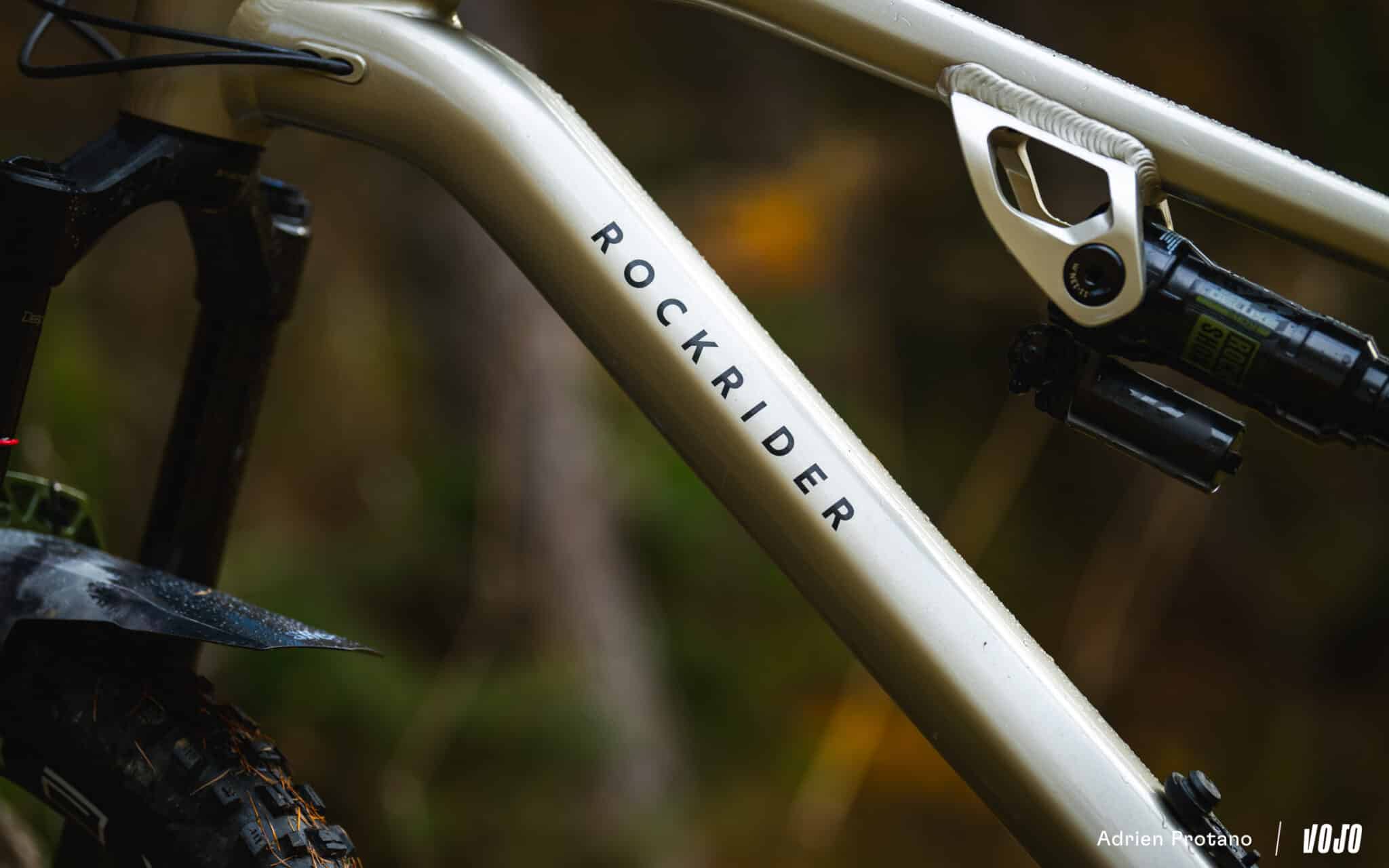 Chez d’autres fabricants, on utilise alors un amortisseur à oeillet qui offre un peu plus de liberté latérale pour permettre à l’amortisseur de s’aligner mais avec le Trunnion, c’est impossible : la fixation est beaucoup plus rigide et l’amortisseur est comme « verrouillé ». Les contraintes sont donc reportées sur le plongeur et l’intérieur de l’amortisseur, des zones qui ne sont pas prévues pour ça. Cependant, Rockrider semble confiante dans sa décision puisqu’elle l’a reproduite sur les deux vélos tout-suspendus de la gamme Feel (ce LT et le Feel S en 130 mm).