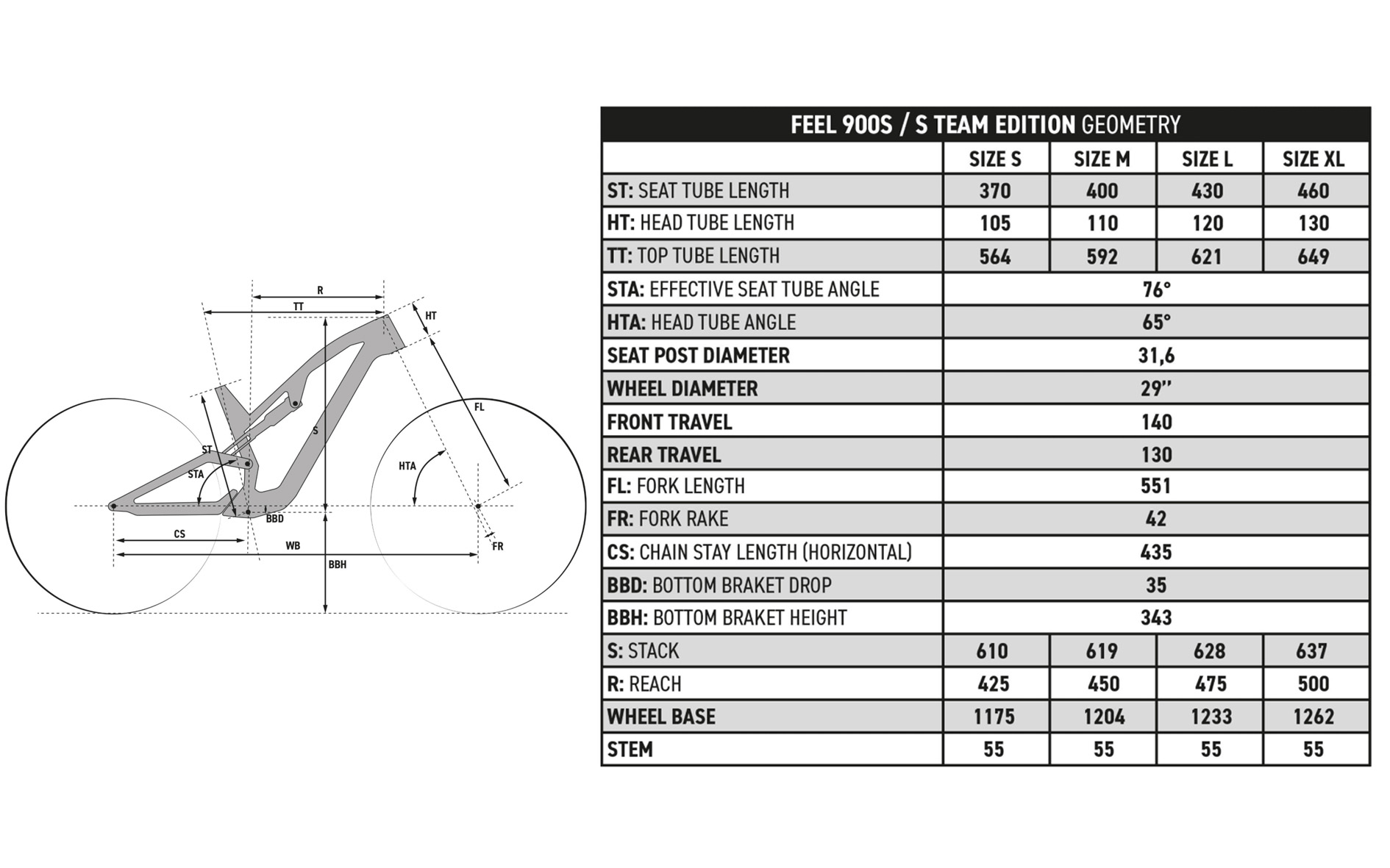 Contrairement à un modèle cross-country (tel que le Race 900) où la performance et l’efficacité dictent le design, ce Feel 900 S est le fruit d’une plus grande liberté laissée à l’équipe de design, en collaboration avec les ingénieurs et les équipes produit. Le désir de la marque, avec ce Feel 900 S, était de créer une réelle identité de par la forme du cadre. Par exemple, l’arête sur le tube diagonal a « été imaginée et créée pour mettre en avant le logo, tandis que la jonction entre l’amortisseur et le tube supérieur donne beaucoup de caractère au cadre ».