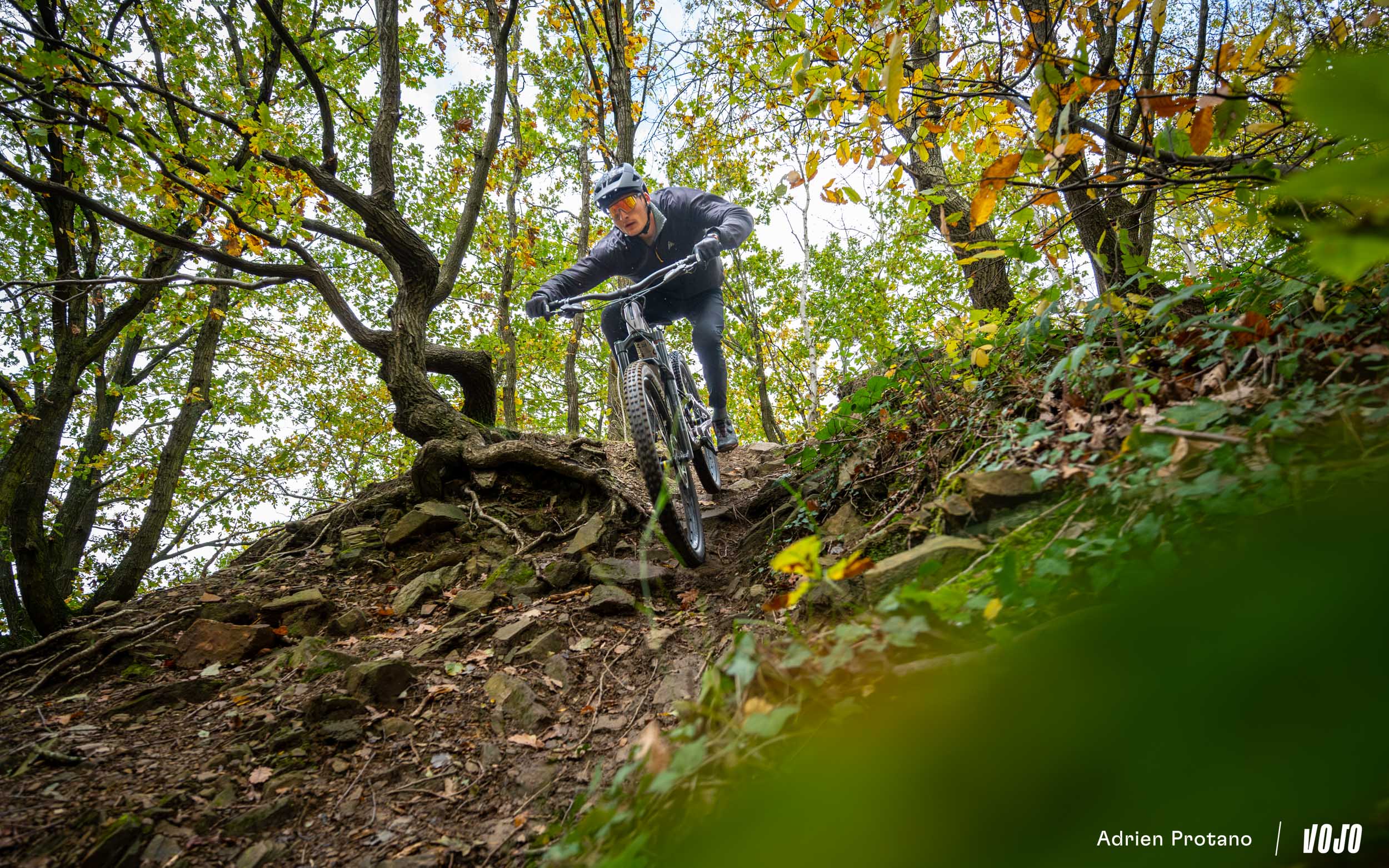 Il faut dire que, pour un vélo de trail, le Feel 900 S appelle à décoller et s’avère très sain une fois en l’air. La moindre petite bosse devient un appel pour s’élancer dans les airs, et le moindre mouvement de terrain donne envie de lancer un bunny-hop.