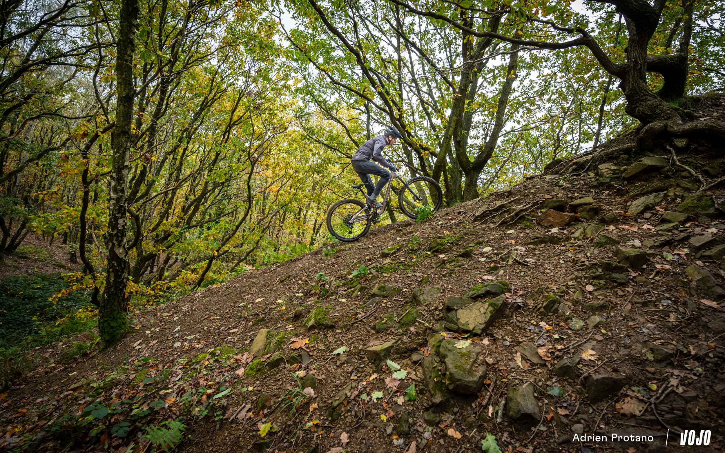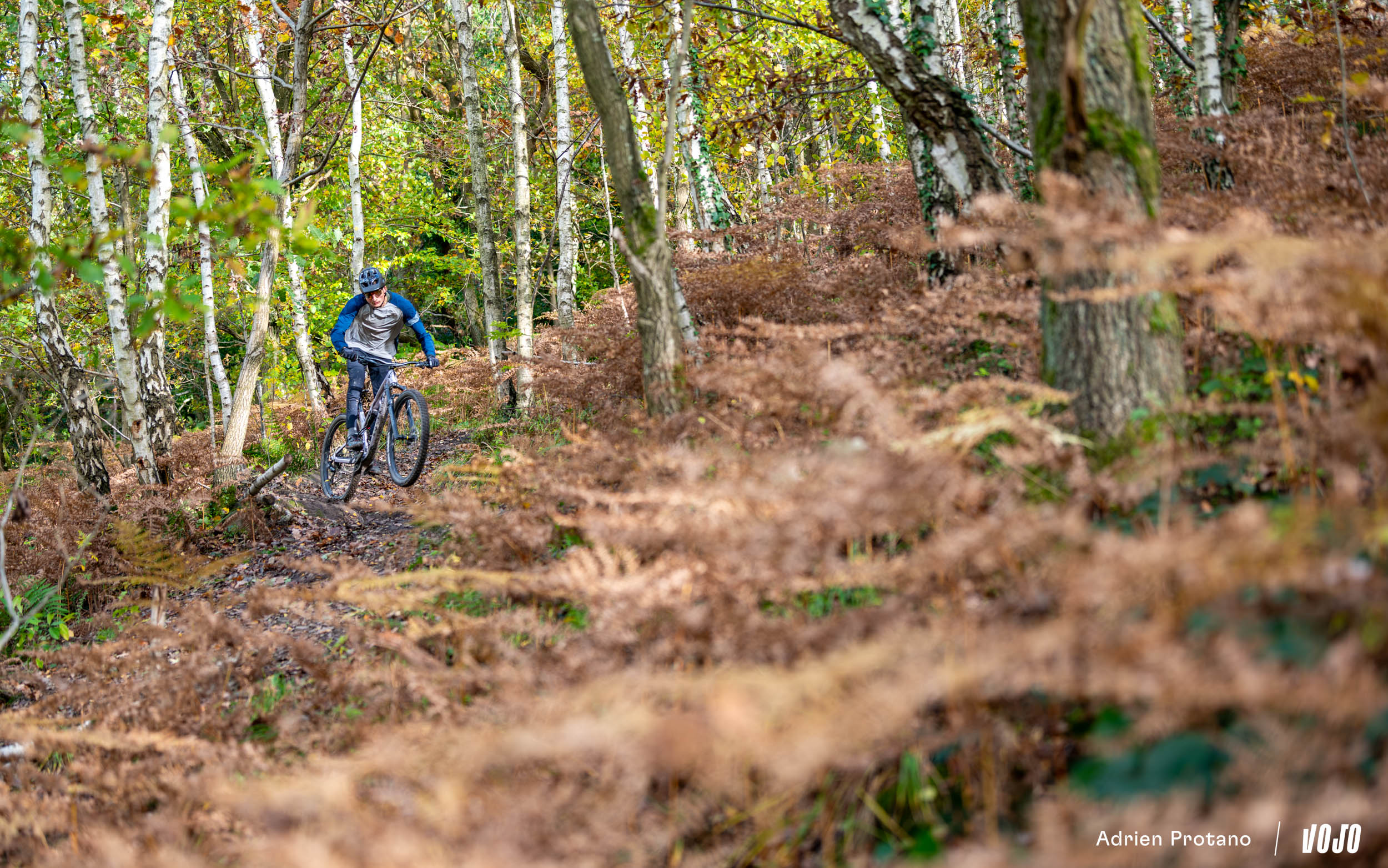 Ces multiples aspects de confort/facilité de prise en main/sentiment de sécurité sont également le fruit de la souplesse bien dosée du châssis. Il est littéralement possible de sentir le vélo travailler et se déformer lors des passages accidentés, ce qui permet de filtrer les vibrations et chocs en provenance du terrain, tout en permettant de profiter de ce travail du carbone pour le convertir en dynamisme une fois que le vélo n’est plus comprimé.