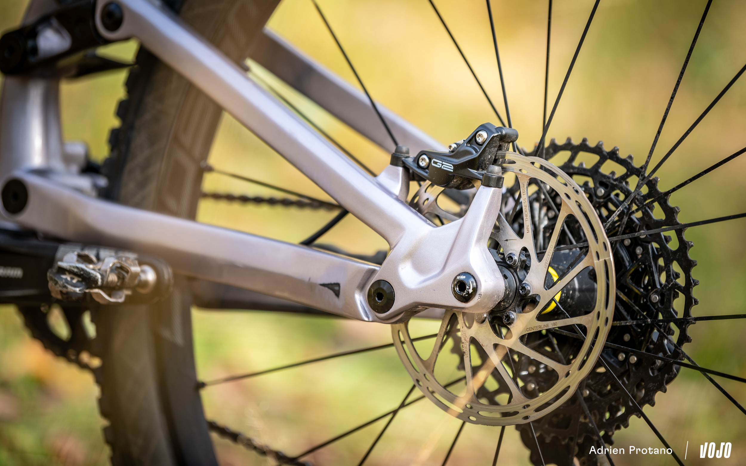 Côté équipements, le petit rappel à l’ordre nous vient des freins. La paire de Sram G2 qui équipe notre modèle de test n’est définitivement pas en forme, affichant des performances en deçà d’autres paires identiques sur d’autres vélos. Mais même parfaitement fonctionnelle, cette paire de freins nous a semblé comme dépassée au vu des capacités du vélo, ou du moins très proche de la limite. Voilà sûrement l’un des meilleurs axes d’évolution possibles de ce modèle.