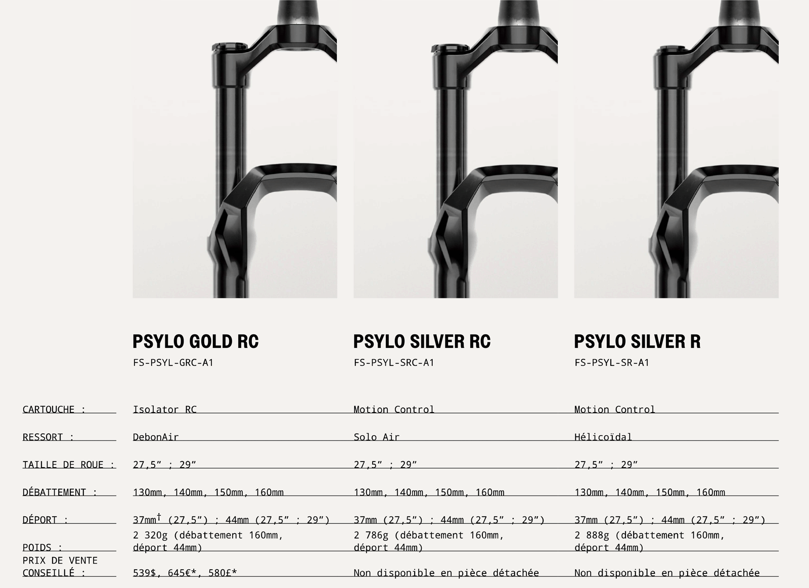Trois modèles sont au programme, mais seule la RockShox Psylo Gold RC sera disponible à la vente au détail, les modèles Silver étant réservés à la première monte.