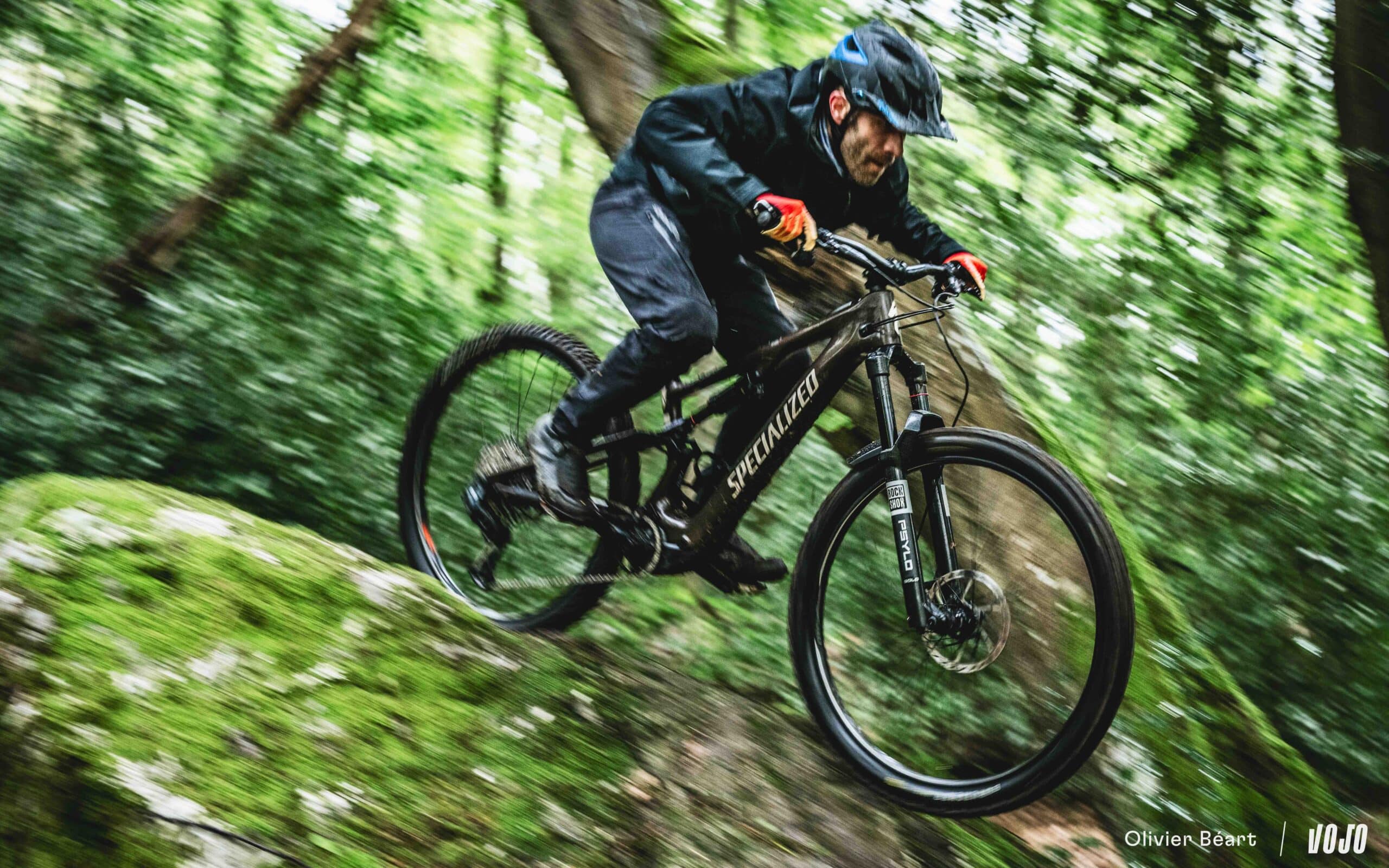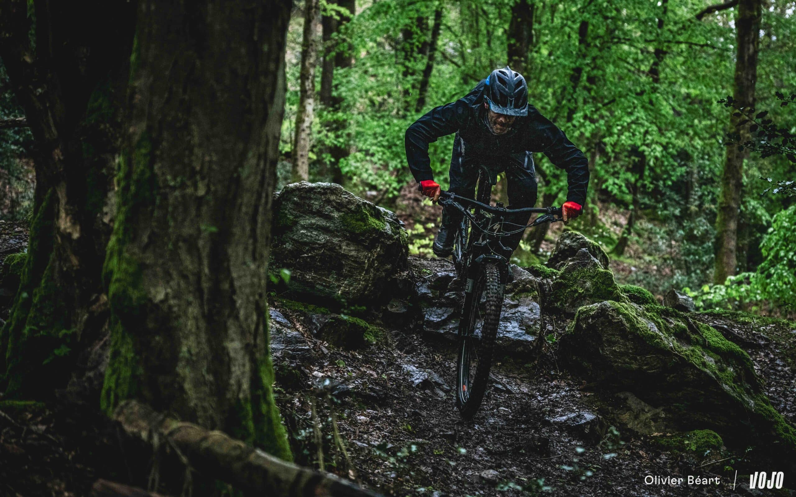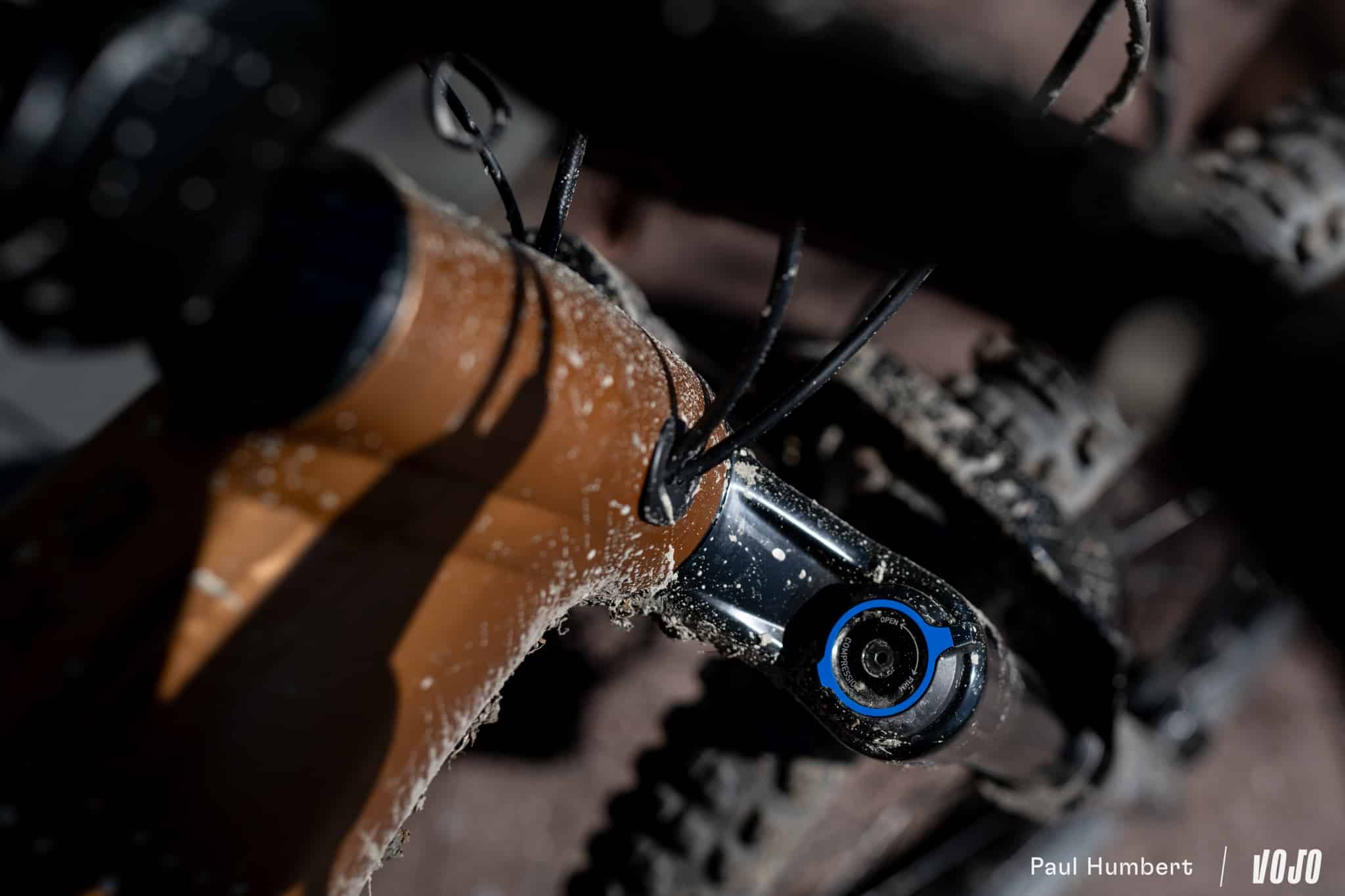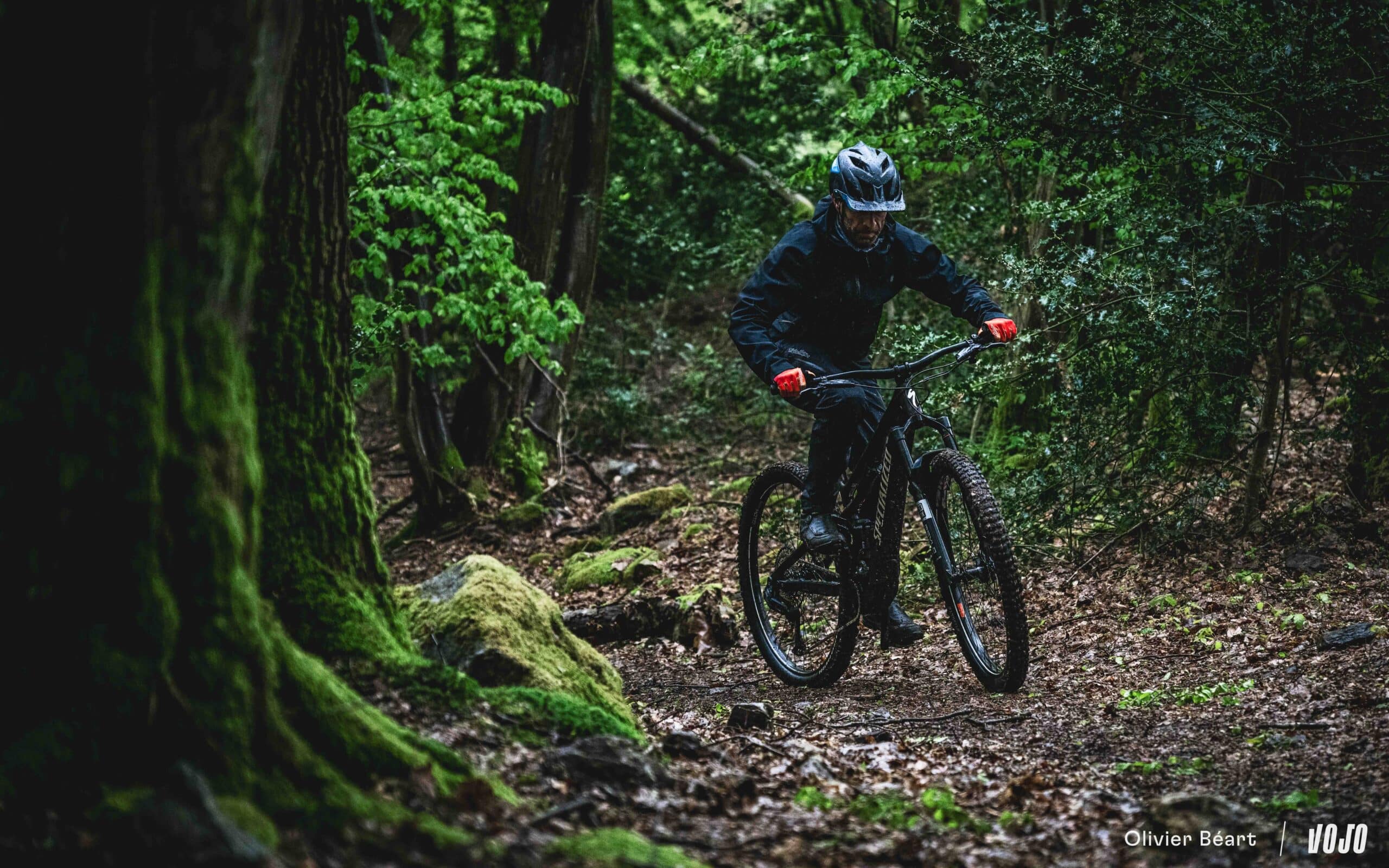 En descente par contre, la RockShox Psylo tout juste « sortie de sa boîte » manque de maintien et on a tendance à aller très vite au fond du débattement. Pour remédier à ça, nous avons tenté de rouler sur le mode intermédiaire de la cartouche hydraulique, mais on sent qu’il est davantage destiné à des sections de pédalage et de plat car on perd en lecture du terrain. Oublions donc l’action sur l’hydraulique. La solution vient plutôt de l’ajout de « volume spacers » dans la chambre d’air. Avec deux, voire trois de ces tokens, le ressort est moins linéaire et on a une fourche qui consomme moins son débattement en fin de course, sans rien perdre de sa sensibilité en début de course.