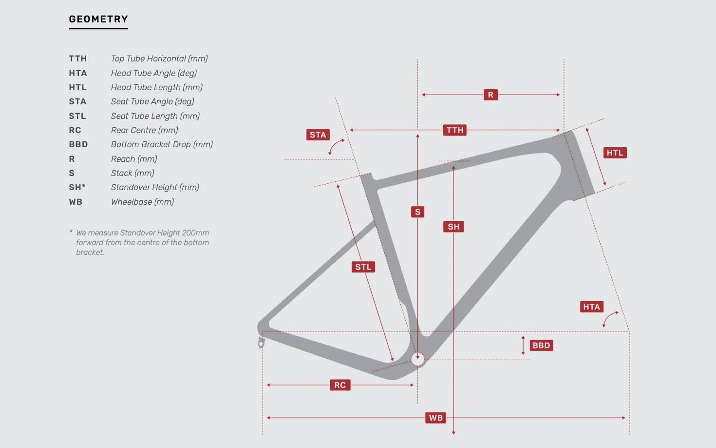 La géométrie du nouveau Solo est assez classique, mais tout à fait dans la lignée des gravel contemporains. On note tout de même un choix de bases très courtes de la part de Rocky (425mm) et le fait qu’il est proposé en 5 tailles depuis le XS jusqu’au XL.