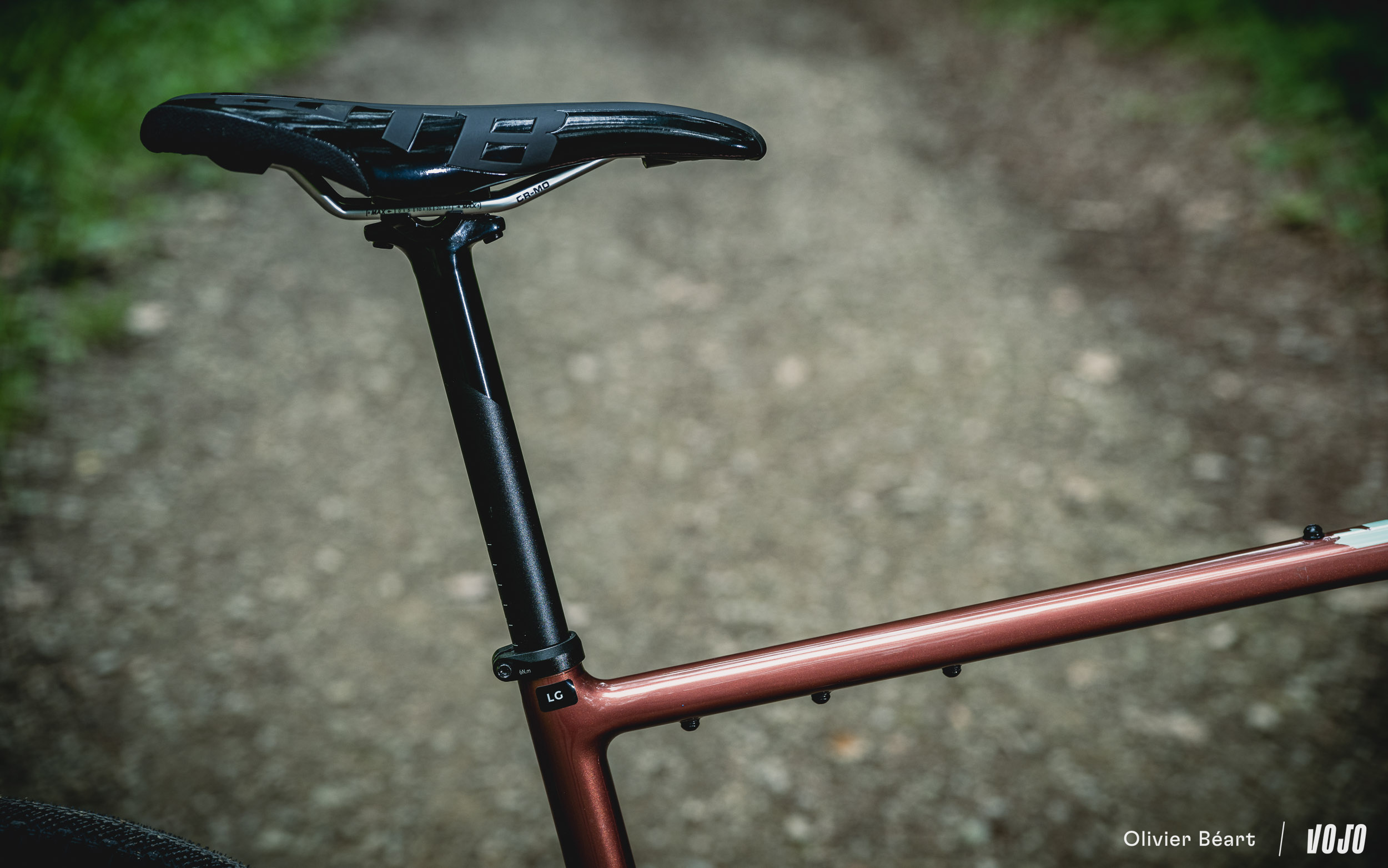 La tige de selle est en aluminium, tout comme le poste de pilotage. Ces composants sont de très belle facture et nous avons beaucoup apprécié la forme du cintre (reach de 70mm, drop de 120mm et flare de 18° pour une largeur de 460mm). La selle WTB Silverado est également toujours un plaisir à retrouver sur un vélo, mais cela reste un élément très personnel.
