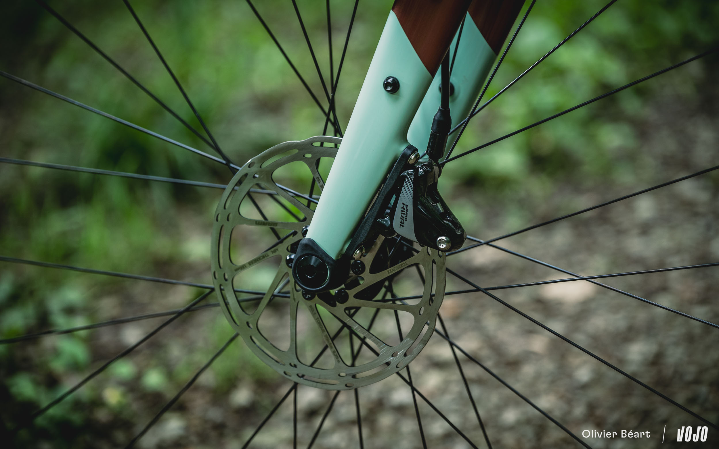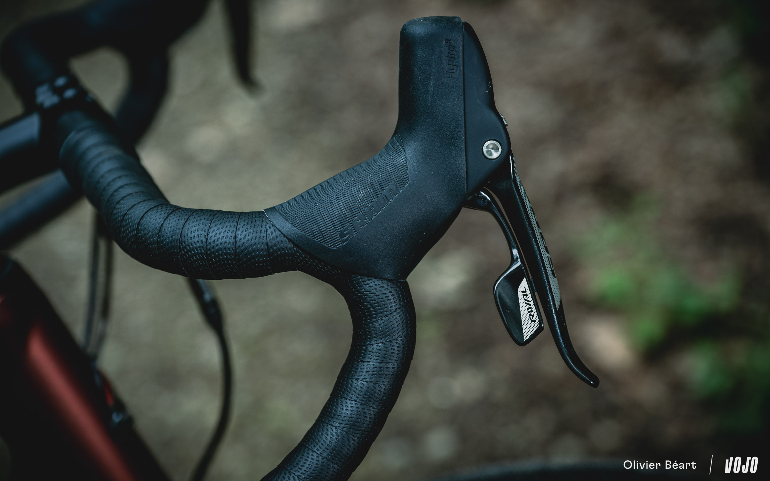 Les freins sont également des Sram Rival avec disques de 160mm à l’avant comme à l’arrière. Là par contre, il y a à redire car la puissance est un peu juste à notre goût, et le toucher des leviers n’est pas aussi convaincant que chez Shimano.
