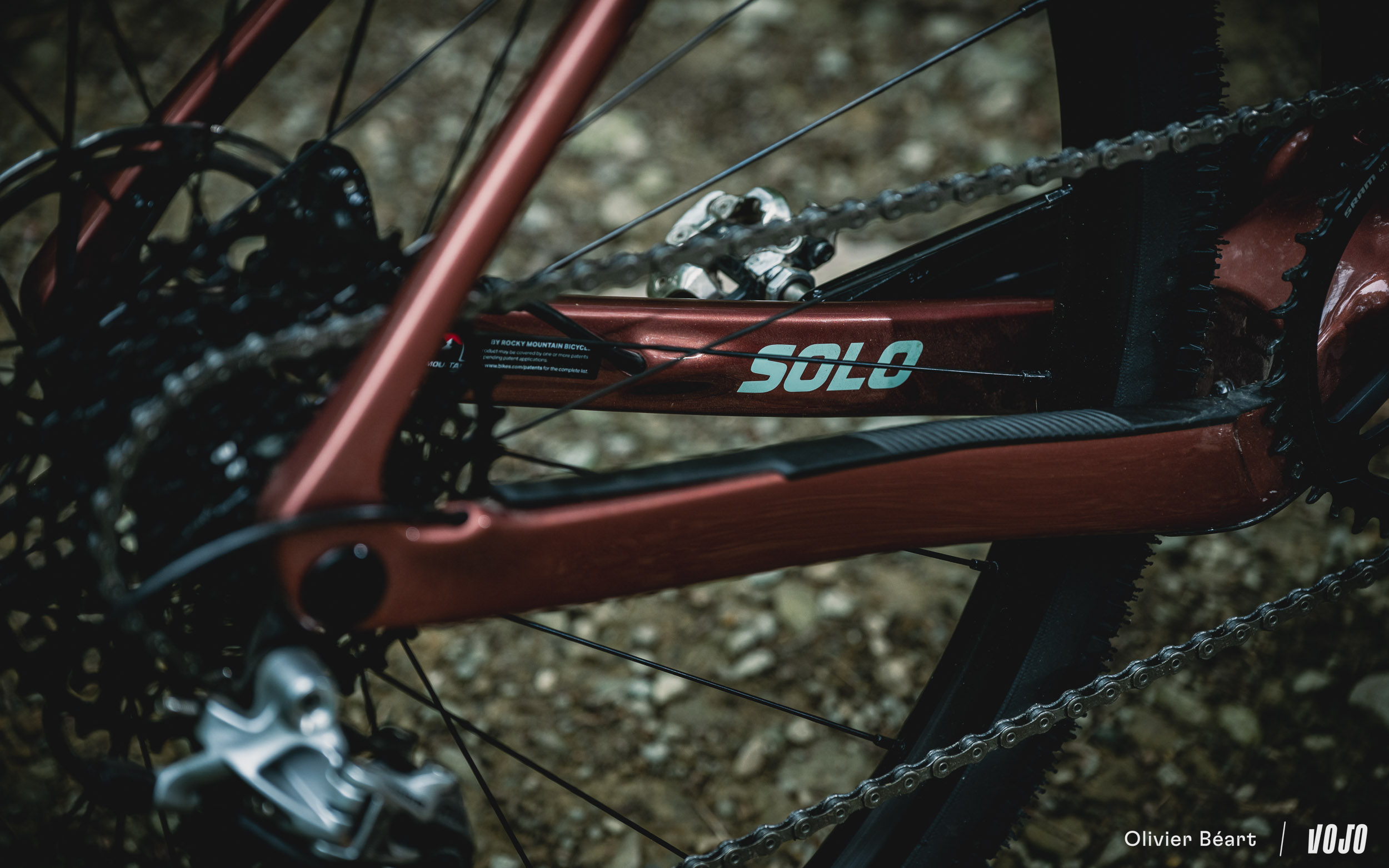 Petite surprise quand on se met debout sur les pédales et/ou qu’on aborde des portions vraiment cassantes : le Solo se montre alors plus exigeant et on sent nettement moins la filtration des impacts. Cela montre que le travail de Rocky Mountain s’est surtout concentré sur le flex du tube de selle, mais moins de l’ensemble bases/haubans. C’est un peu dommage car on s’attendait à un gravel très à l’aise en descente technique de la part de Rocky Mountain, mais le Solo demande un peu d’attention et de dextérité pour être dompté.
