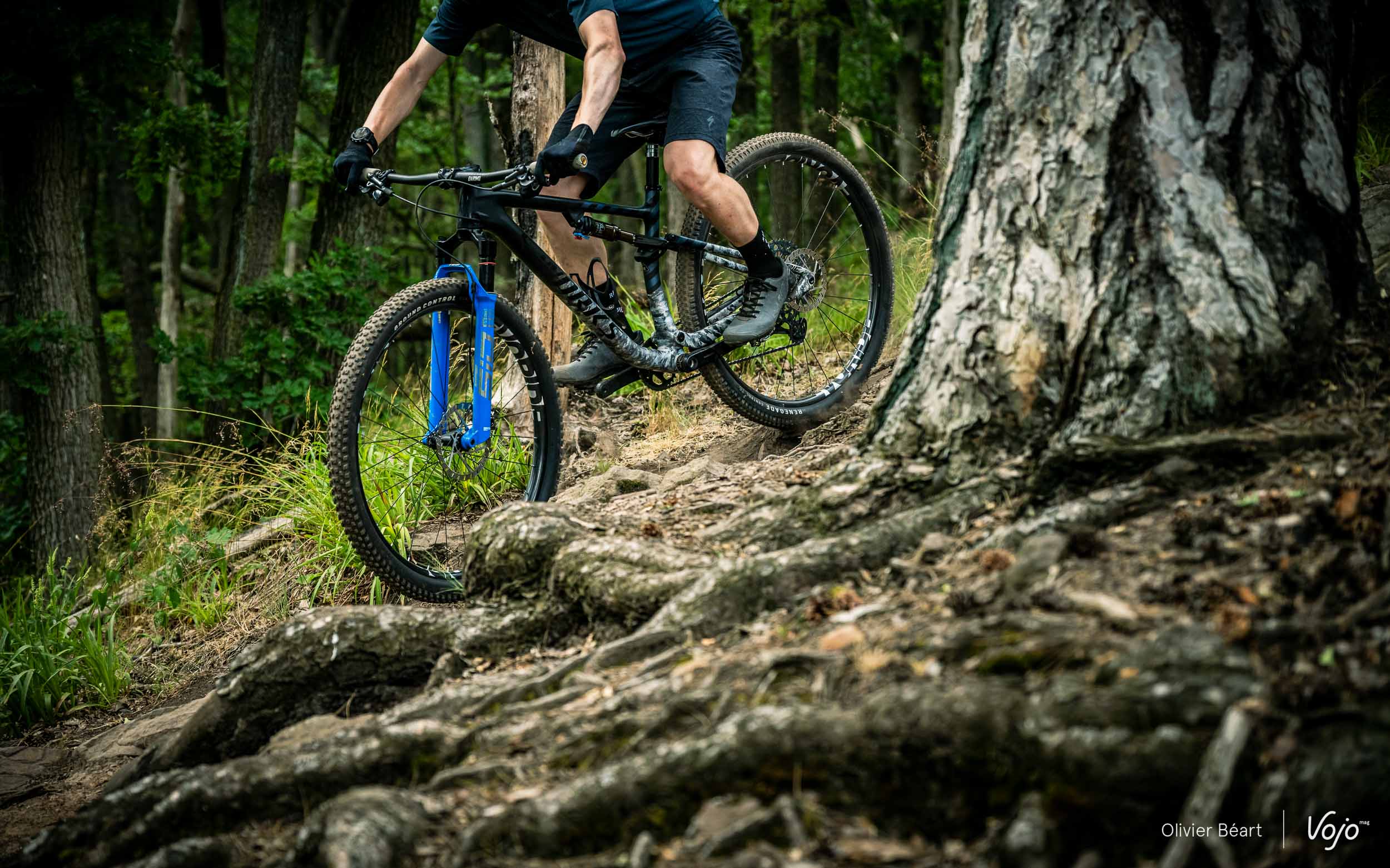 Dans les appuis, les roues sont précises et prévisibles. Aucune vibration parasite ne vient perturber les trajectoires, ce qui se ressent surtout sur les terrains cassants, et on ne sent jamais la roue avant s’effondrer quand on la charge généreusement dans de grands virages relevés. Bref, le compromis entre rigidité latérale et tolérance en frontal est parfaitement réussi.