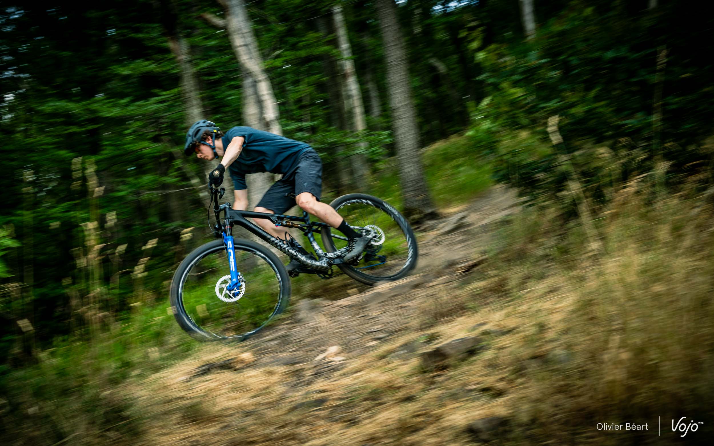 Dans les appuis, les roues sont précises et prévisibles. Aucune vibration parasite ne vient perturber les trajectoires, ce qui se ressent surtout sur les terrains cassants, et on ne sent jamais la roue avant s’effondrer quand on la charge généreusement dans de grands virages relevés. Bref, le compromis entre rigidité latérale et tolérance en frontal est parfaitement réussi.