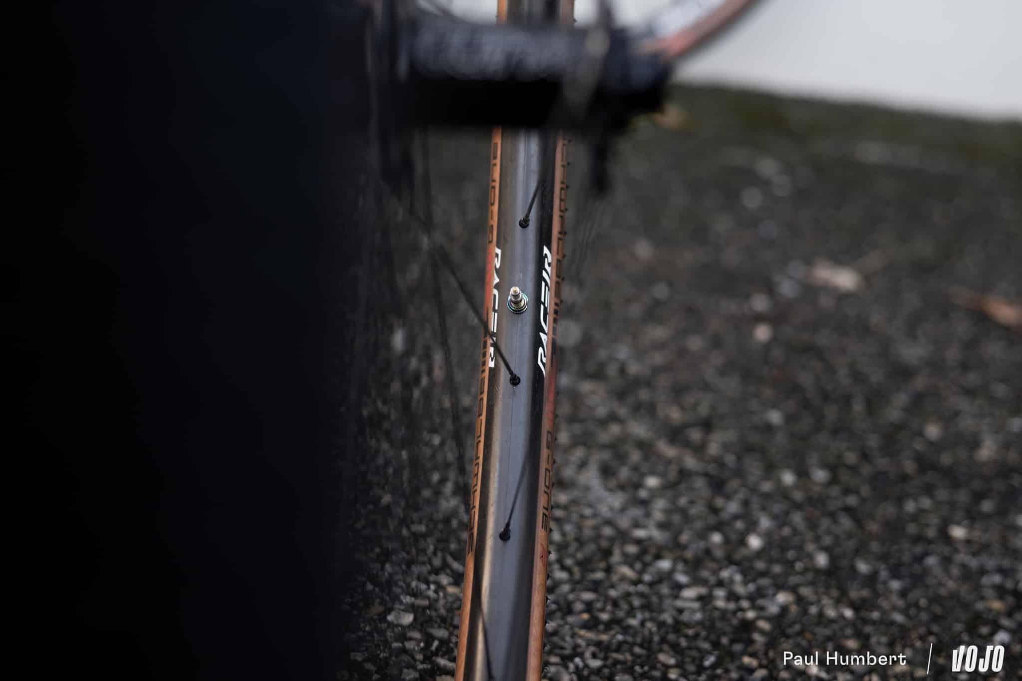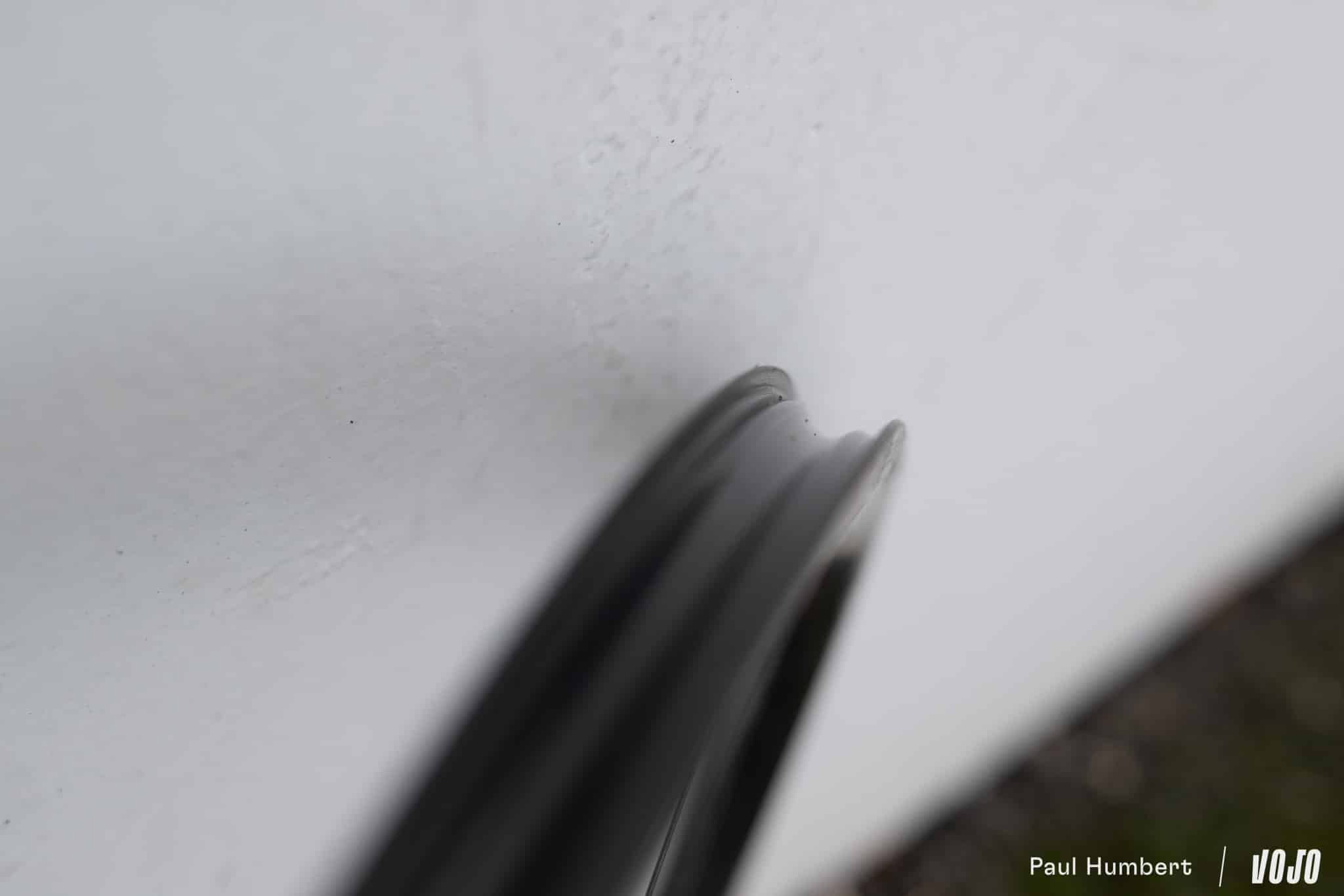 Ici, la jante est plus basse que sur les Race’R (25 mm contre 30 mm) et plus large : 24 mm par défaut. On remarque également que le sommet des flancs est plus large, afin d’offrir une jante plus solide face aux impact et une meilleure protection contre les pincements. Qui dit jante plus large dit pneus plus larges : idéalement entre 32 et 52 mm de section selon Asterion, contre 28 à 38 mm pour les Race’R.