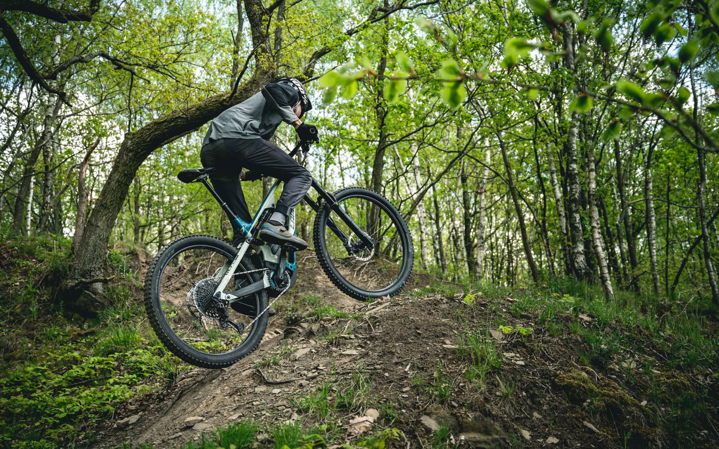 En tout cas, les capacités d’absorption des impacts dans le défoncé restent une caractéristique marquante et c’est bien cela qui compte le plus ! Le grip dans les portions en dévers est toujours aussi bluffant. On pose le vélo et, pour peu qu’on place à peu près correctement le poids du corps, la machine tient imperturbablement la ligne même s’il y a des cailloux et des racines sur la trace.