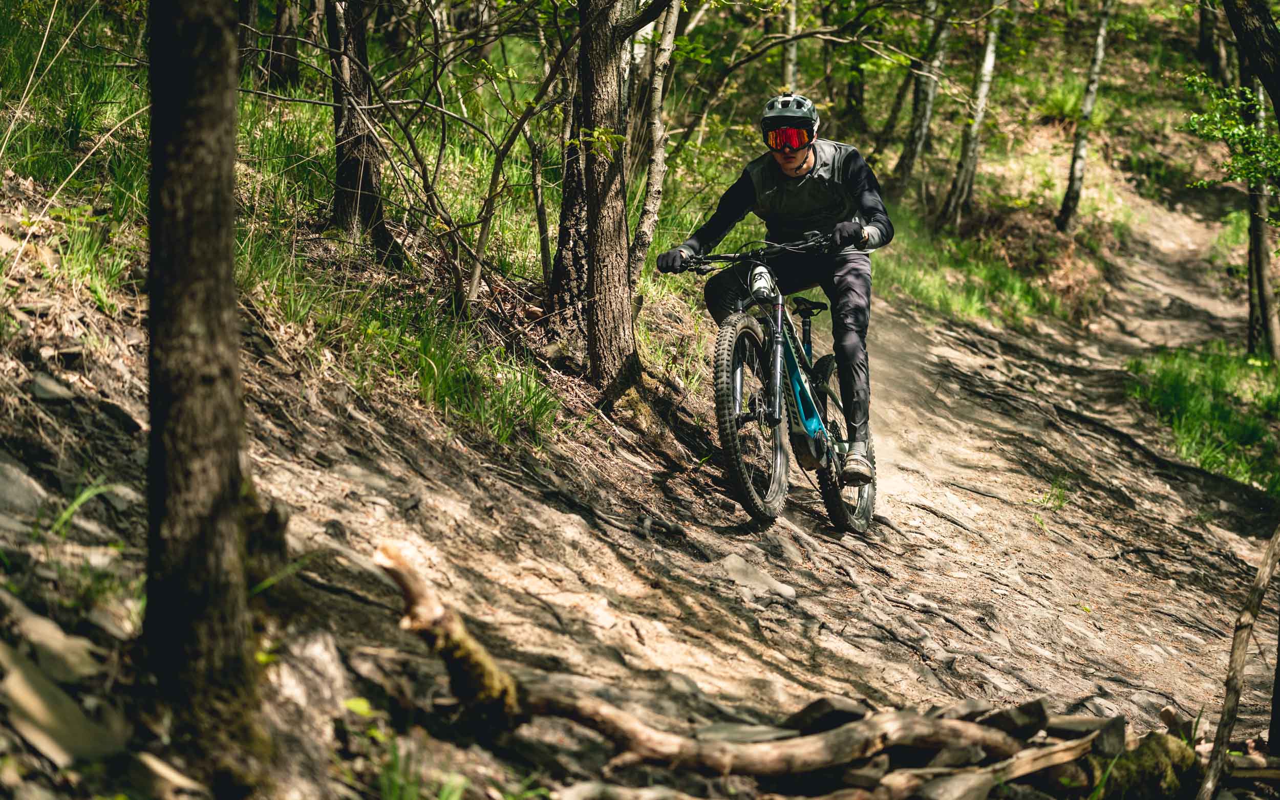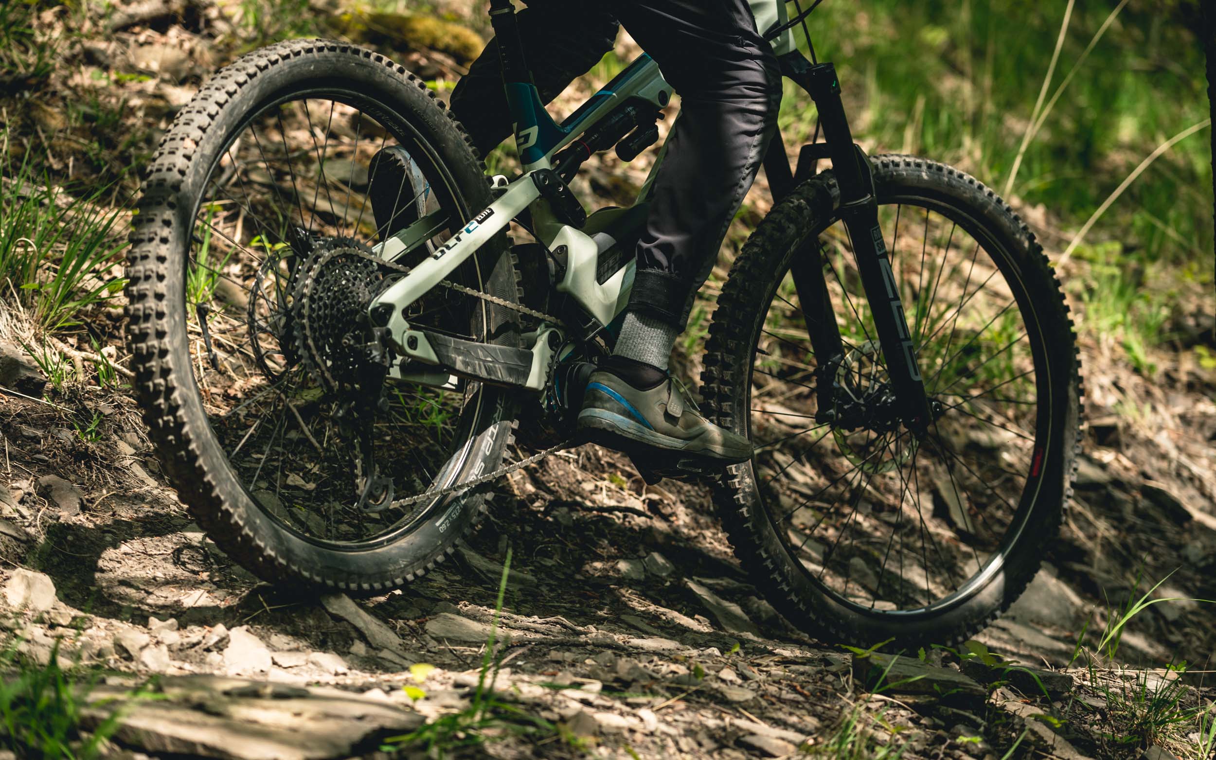 En tout cas, les capacités d’absorption des impacts dans le défoncé restent une caractéristique marquante et c’est bien cela qui compte le plus ! Le grip dans les portions en dévers est toujours aussi bluffant. On pose le vélo et, pour peu qu’on place à peu près correctement le poids du corps, la machine tient imperturbablement la ligne même s’il y a des cailloux et des racines sur la trace.