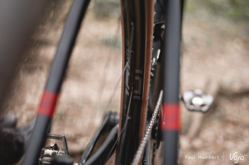 Ces deux montures, les Zipp 101 XPLR les ont complètement transformées. Avec ses roues d’origine, les très rigides Zipp 303 Firecrest, le Lauf avait tendance à rebondir de la roue arrière. Pas confortable, parfois risqué pour les pneus et potentiellement dangereux pour le pilote suivant la situation, ce qui oblige à faire preuve d’une certaine prudence en descente.