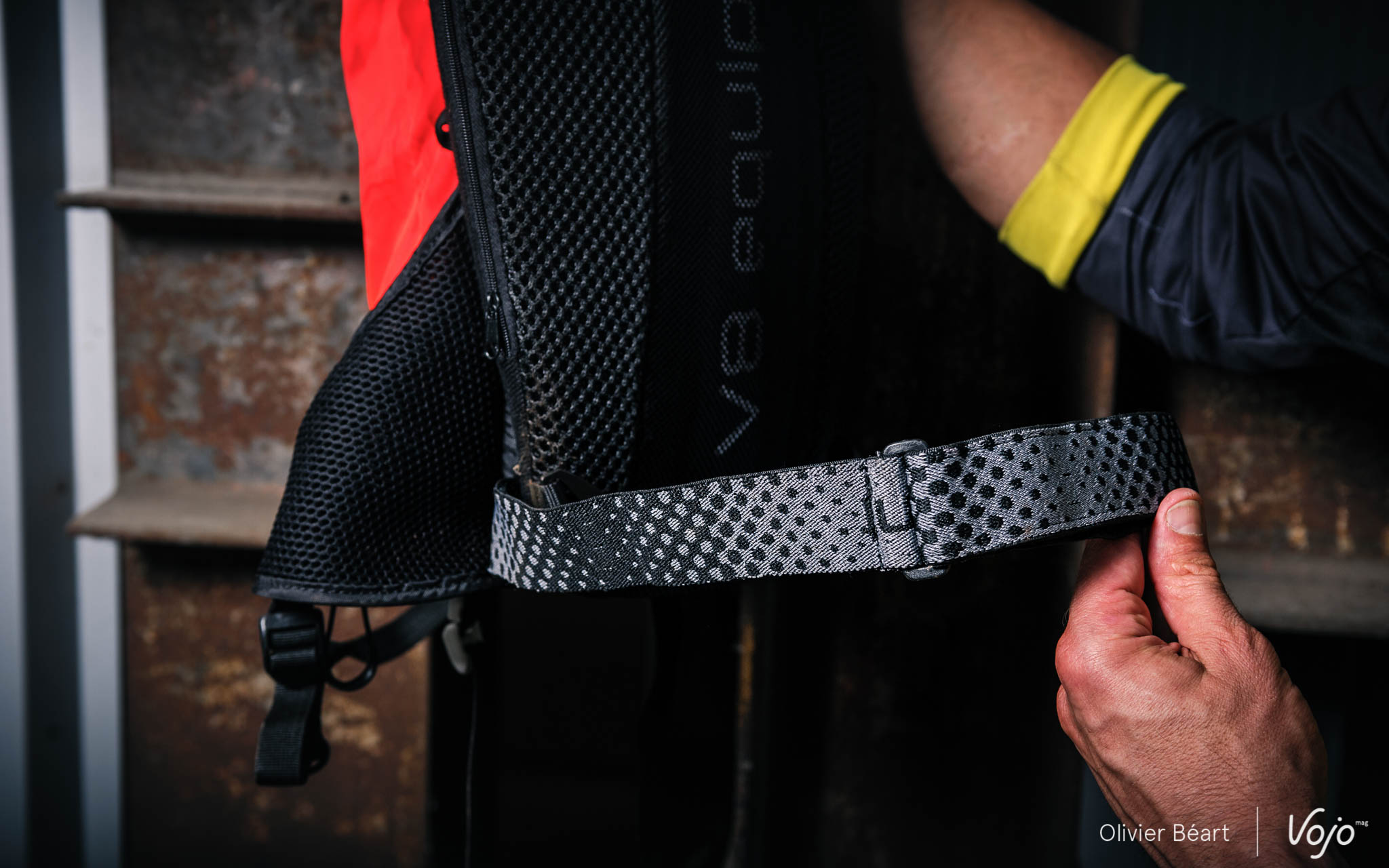 Heureusement, il y a une parade : récupérer une des ceintures d’attache qui sert quand on utilise la dorsale seule et s’en servir comme ceinture ventrale. Là, il bouge encore un peu, mais cela redevient tout à fait raisonnable. Et vu la petite taille de la sangle, elle n’occasionne pas de gêne ou de sensation de chaleur supplémentaire quand on roule par temps chaud. A propos de chaleur, le sac V8 est correctement ventilé dans le dos, mais il ne rivalise pas avec les meilleurs, tels le sac Scott Trail Protect FR12 que nous avons aussi testé dernièrement.