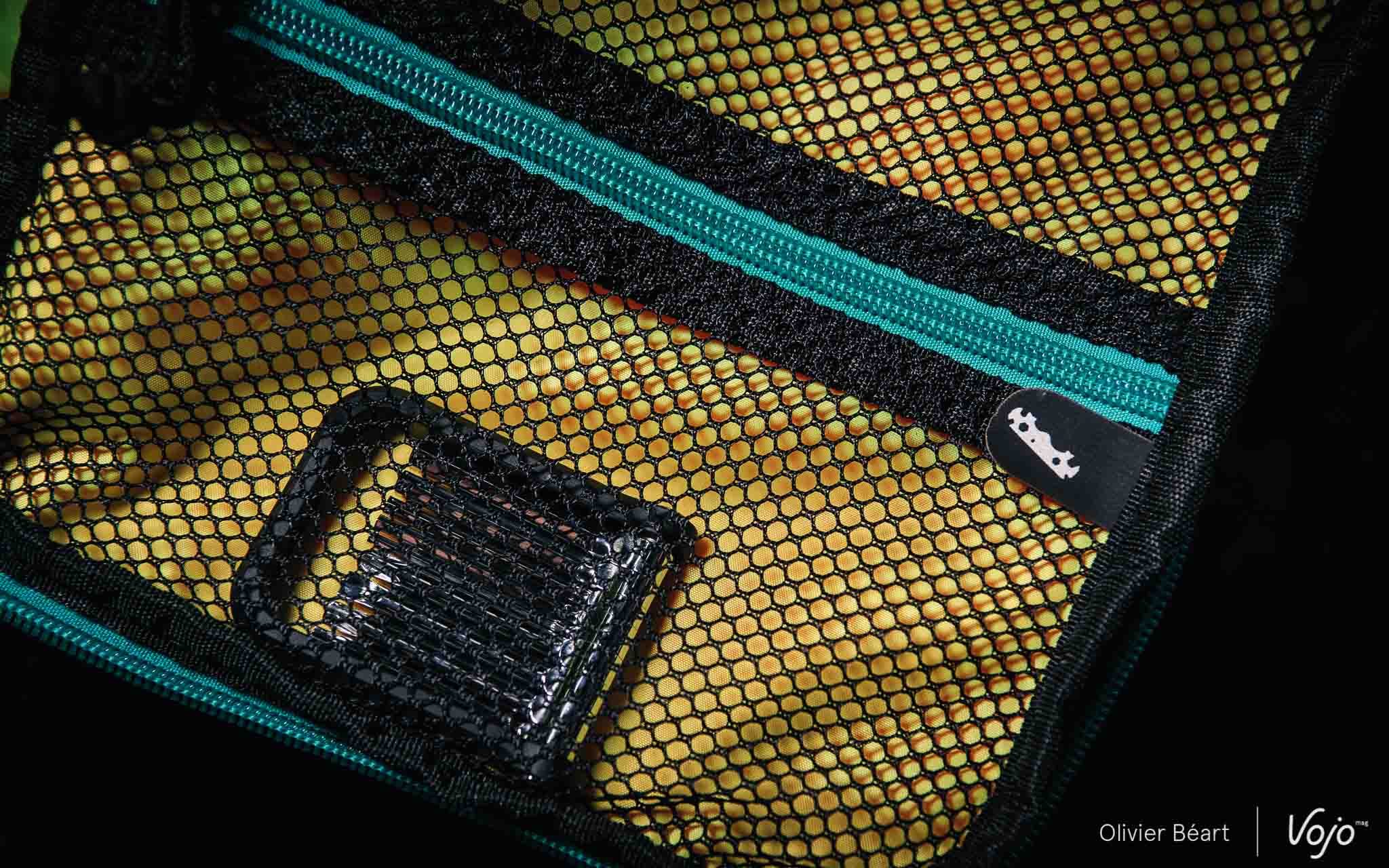 Sangle d’accroche pour pompe, poche douce pour le téléphone, crochet pour les clés, filet à outils et même une poche « flottante » contenant la protection de pluie : si vous ne parvenez pas à ranger tout ce qu’il vous faut pour rouler, on n’y comprend plus rien. Autre petit détail bien pensé, les couleurs vives de l’intérieur du sac aident également à rendre l’ensemble bien visible et à retrouver facilement ses affaires.