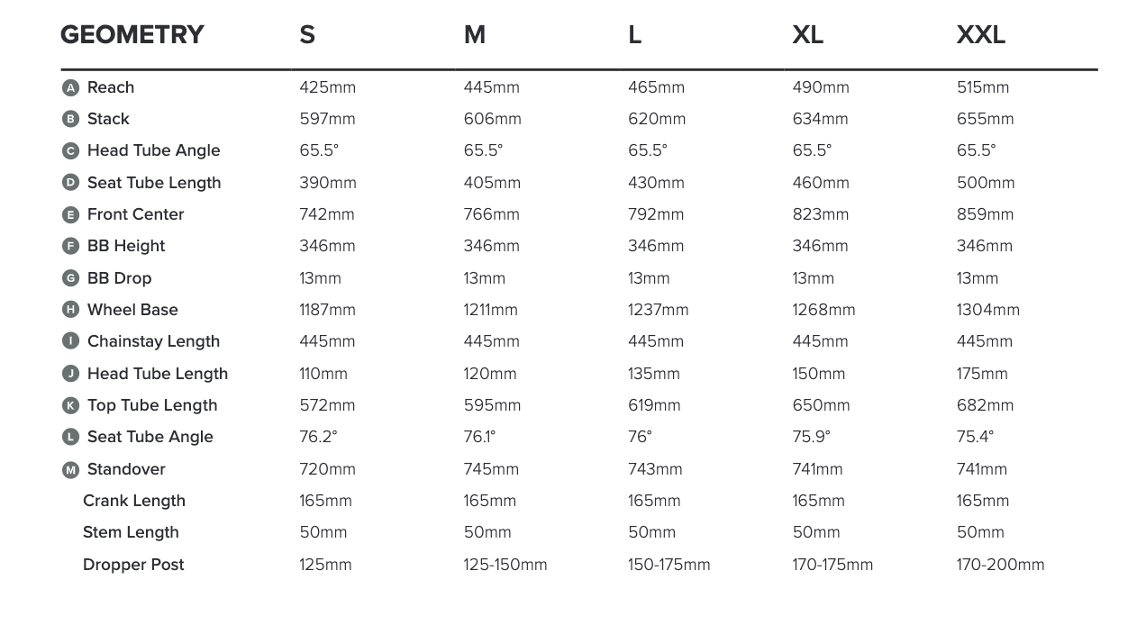 Toujours dans la construction, les roulements et visseries ont été sélectionnés en accord avec le poids et le programme du vélo avec des axes traversants et des roulements costauds. On souligne également le choix de manivelles courtes de 165mm de long et l’utilisation de tiges de selles à grand débattement sur les plus grandes tailles.