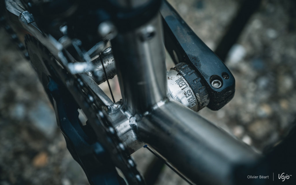 David Robert ne fait absolument aucun secret sur la production de ses cadres : comme pour les vélos Léon, tout est conçu et étudié en France, et la production se fait en Asie chez un des meilleurs spécialistes en la matière qui a produit tous les cadres Léon depuis 2016, et qui produit aussi désormais les cadres Sauvage. Quant aux tubes, il s’agit de titane d’origine américaine, avec du 3Al/2.5V double butted (0.9/0.7/0.9) pour les tubes principaux et du 6/4 pour les pièces nécessitant un plus haut niveau de rigidité comme le boîtier de pédalier.
