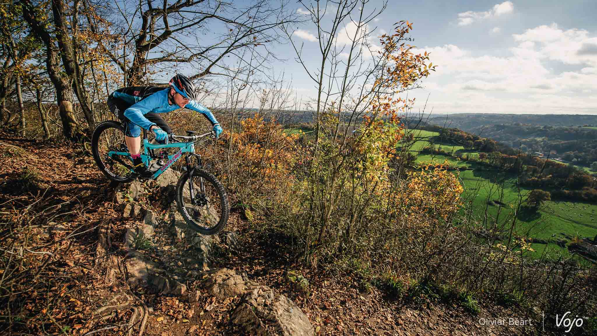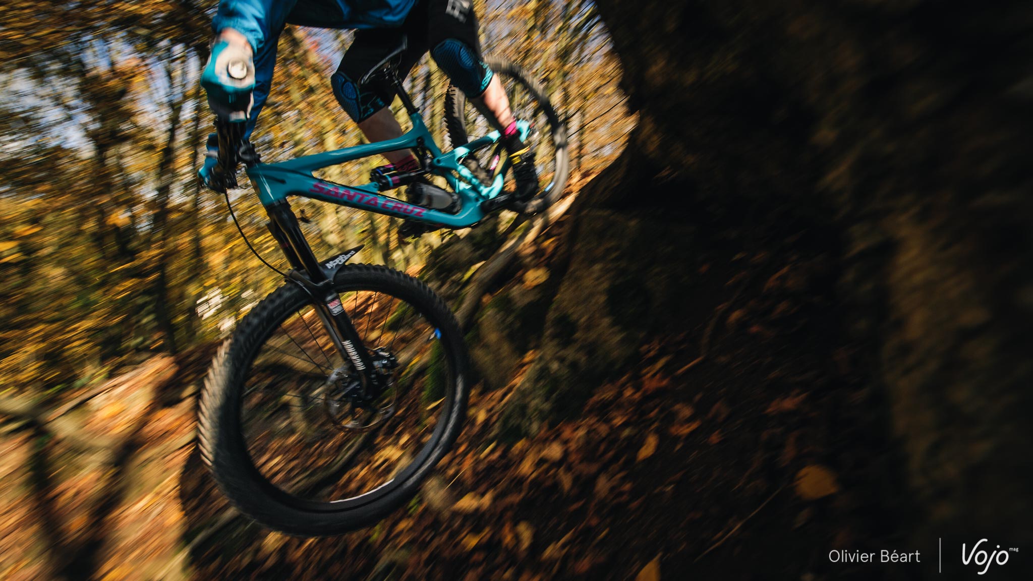 On attaque quelques portions rocheuses en dévers, et c’est vraiment là qu’on se rend compte du gain incroyable apporté par le Procore. Le grip est tout simplement redoutable ! Disons-le franchement, ce système permet de rouler « salement » et pardonne énormément, même dans les portions les plus techniques et chaotiques. De nouvelles lignes s’offrent à nous, on ose bien plus de choses et on est rassuré en se disant que quoi qu’on fasse et où qu’on passe, ça tiendra. Et effectivement, ça tient, encore plus avec les pressions idéales auxquelles nous sommes parvenus au fil de nos ajustements : 1 bar à l’avant et 1.2 à l’arrière. Ces valeurs ne sont certainement pas universelles, mais elles convenaient parfaitement au vélo de test – un Santa Cruz Nomad 3 – et à notre façon de rouler. A chacun bien sûr de trouver les pressions qui lui conviennent ! Pour l’anecdote, nous avons un jour sans le savoir roulé avec 800g dans le pneu avant, et si nous avons évidemment senti une déformation plus importante que d’habitude, ça restait roulable et le grip était encore plus phénoménal. C’est bien simple, il faut le niveau de Nicolas Lau pour doucement sentir les limites du Procore dans certaines circonstances, comme il nous l’expliquait récemment dans une interview.