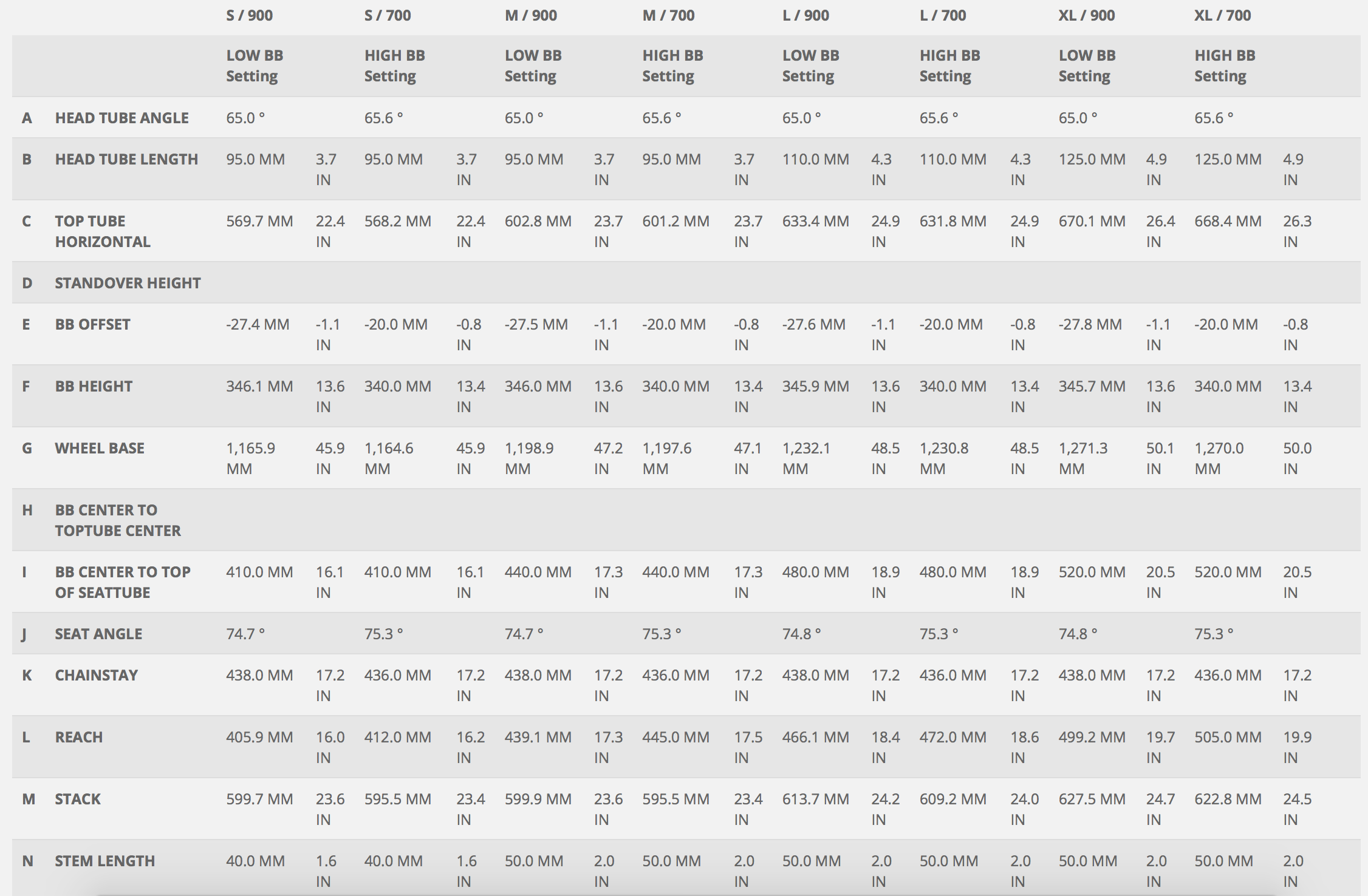 En 27,5 pouces, on peut descendre jusqu’à 2.5 de section sur les pneus, avec du 2.8 en monte standard ; et en 29, Scott recommande de jouer entre 2.4 et 2.6 maxi. Voici un petit récapitulatif des recommandations :