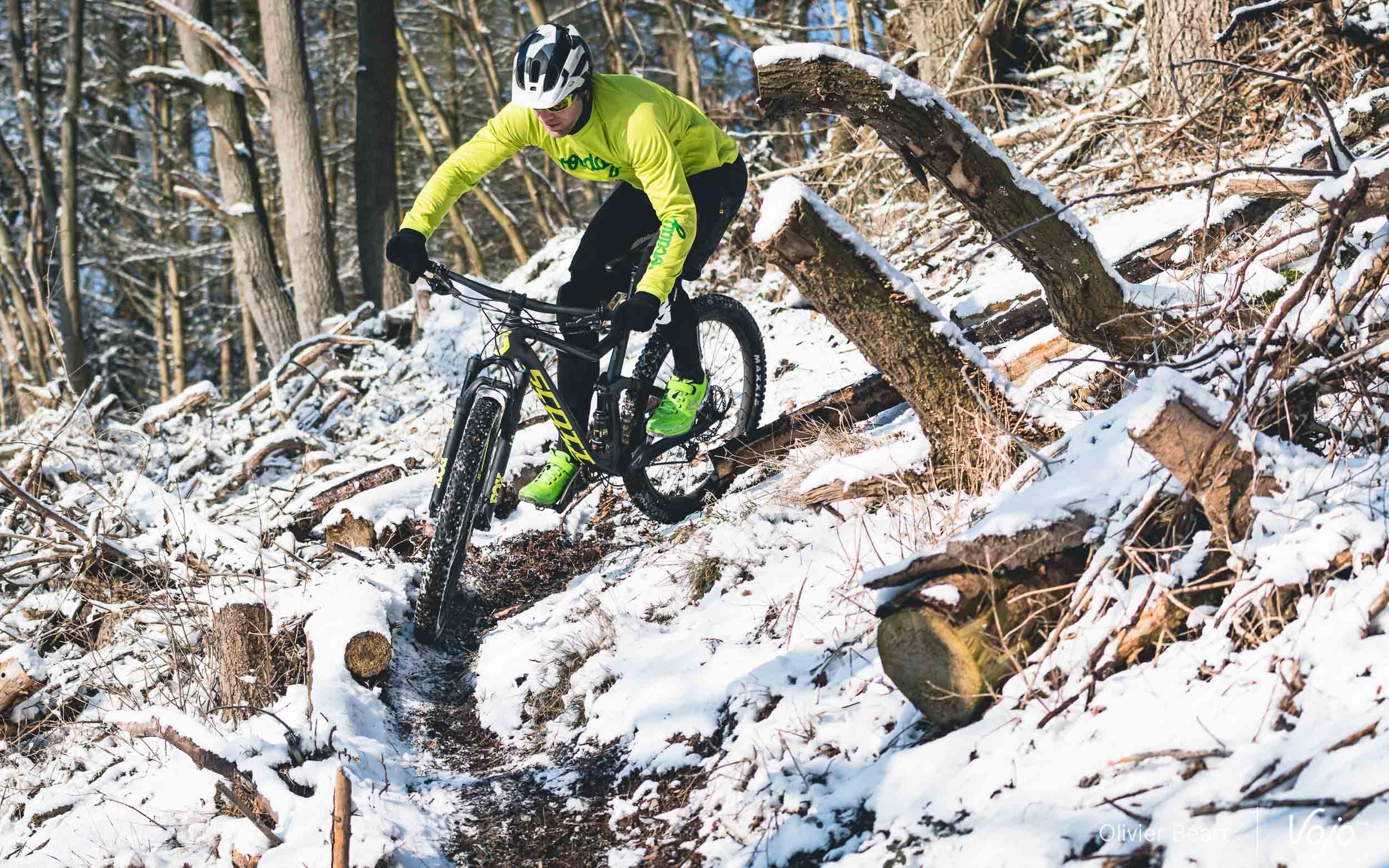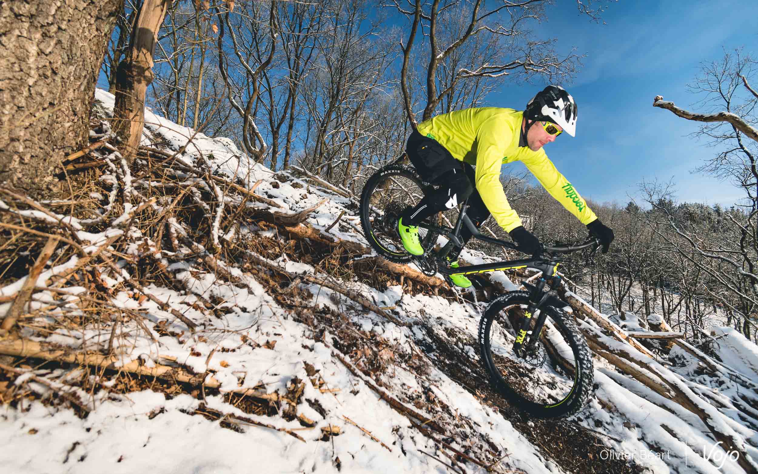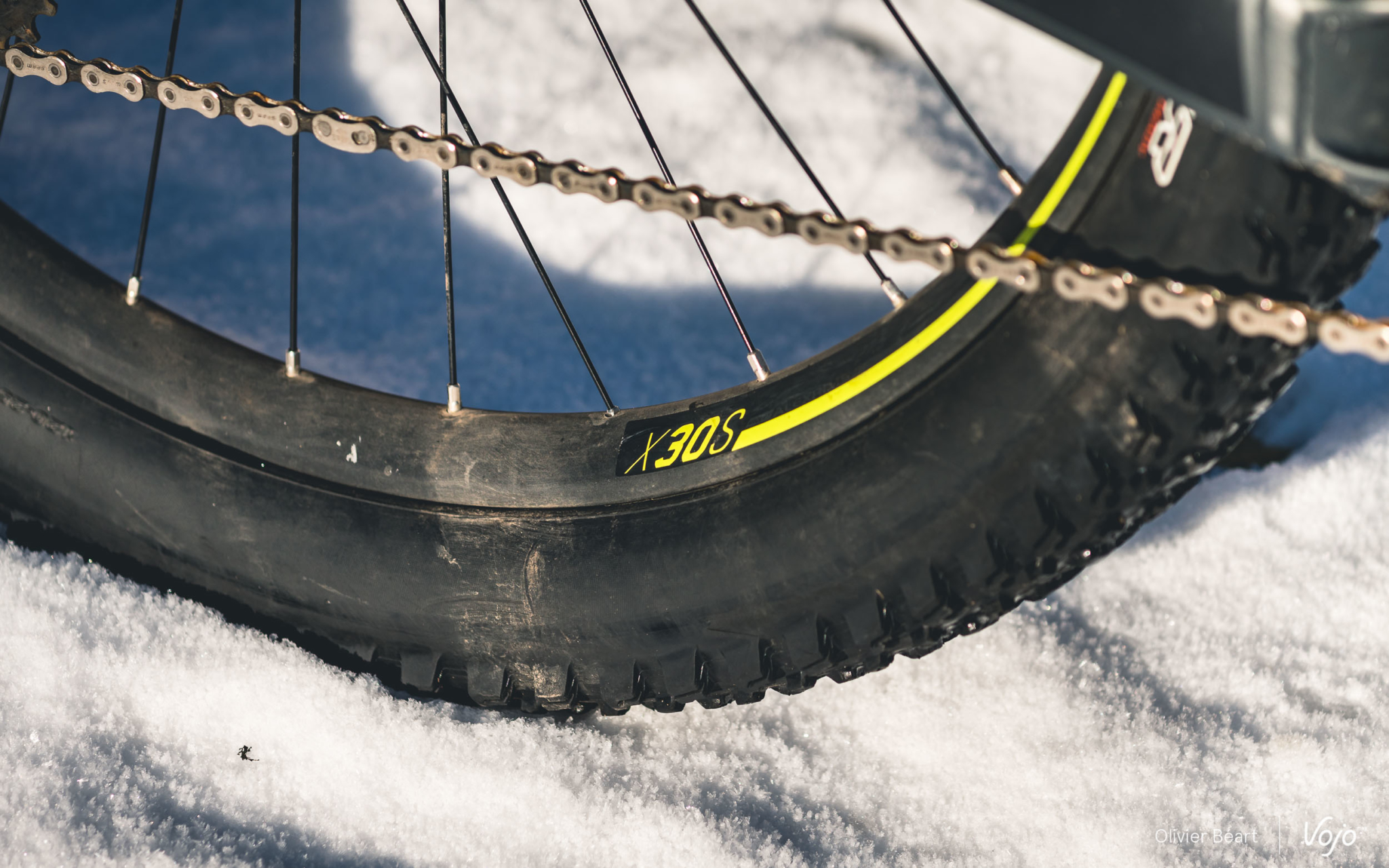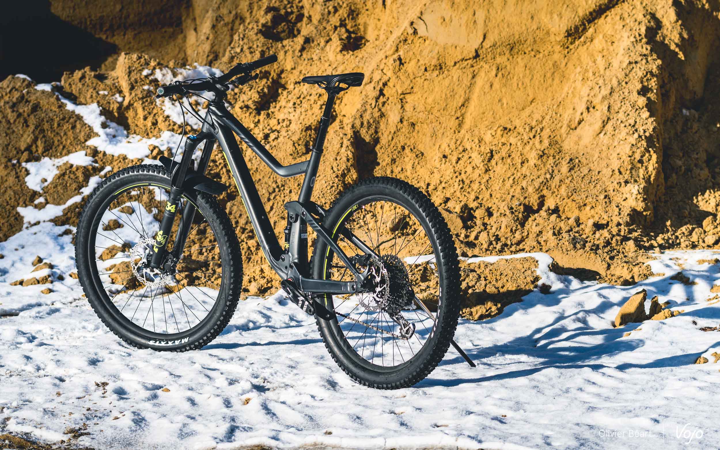 Pour autant, ce n’est pas un vélo d’expert ou de puriste, mais plutôt une monture facile à prendre et main et à appréhender. Les gros pneus en 2.8 y sont pour quelque chose, mais une fois encore, à l’avant, nous ne sommes pas vraiment convaincus. Dans la rocaille, pourquoi pas, mais dès qu’il y a de quoi mettre des appuis, ça manque clairement de précision. Donc on a fait ce qu’on adore (et tant pis si c’est interdit par l’UCI, on ne parle pas ici de compétition), on a mis une roue de 29″ devant !