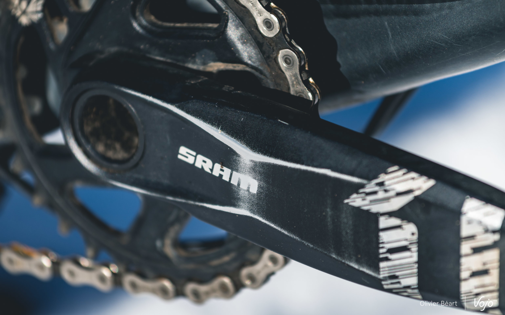 Au niveau de la transmission, le Sram GX Eagle sonne comme une évidence à ce niveau de gamme. Il offre toute la polyvalence nécessaire pour ce type de vélo et son fonctionnement est bon même si on n’a pas la rapidité et la précision du haut de gamme. Seul bémol : ce modèle de manivelles large a un revêtement qui a tendance à s’user assez vite, alors que Sram nous a habitués à mieux. Le petit anti-déraillement Scott est quant à lui efficace et discret. Bien vu.