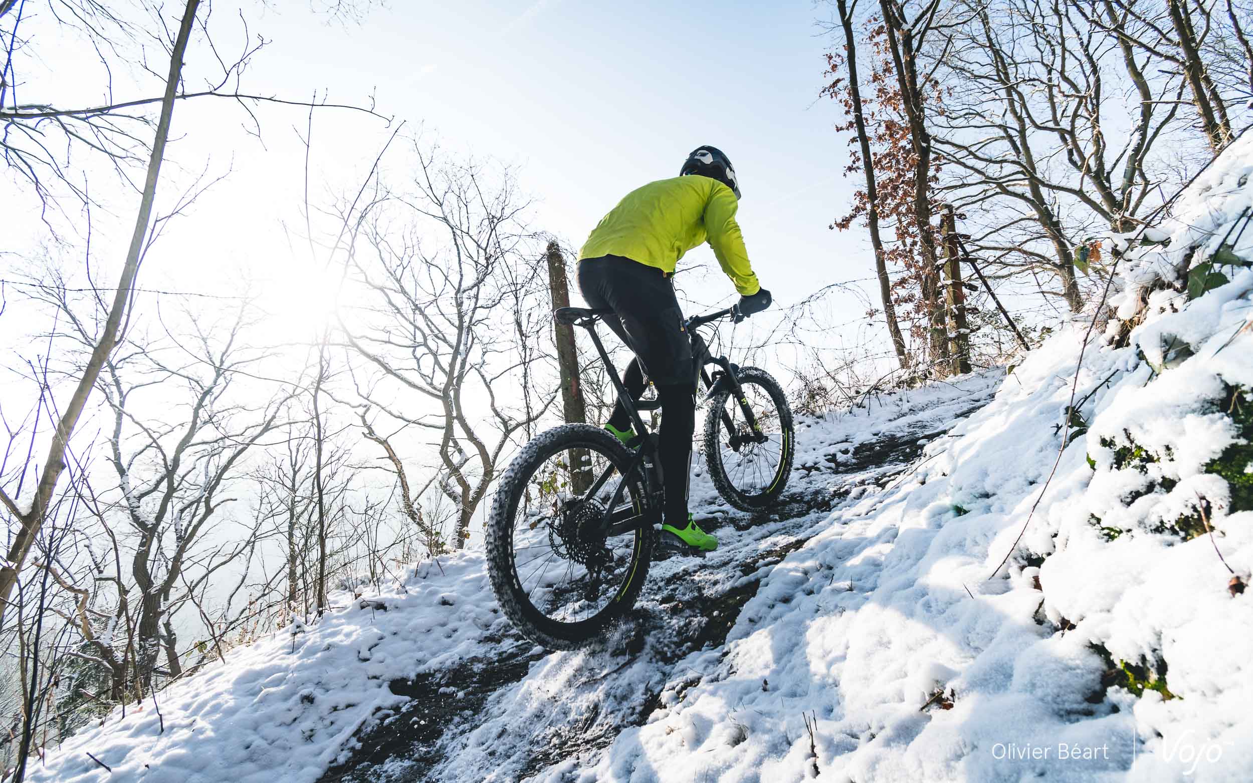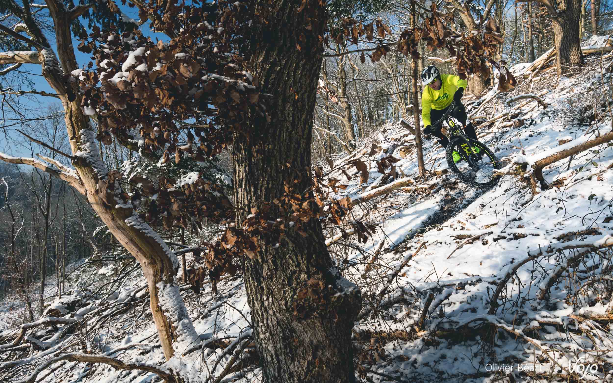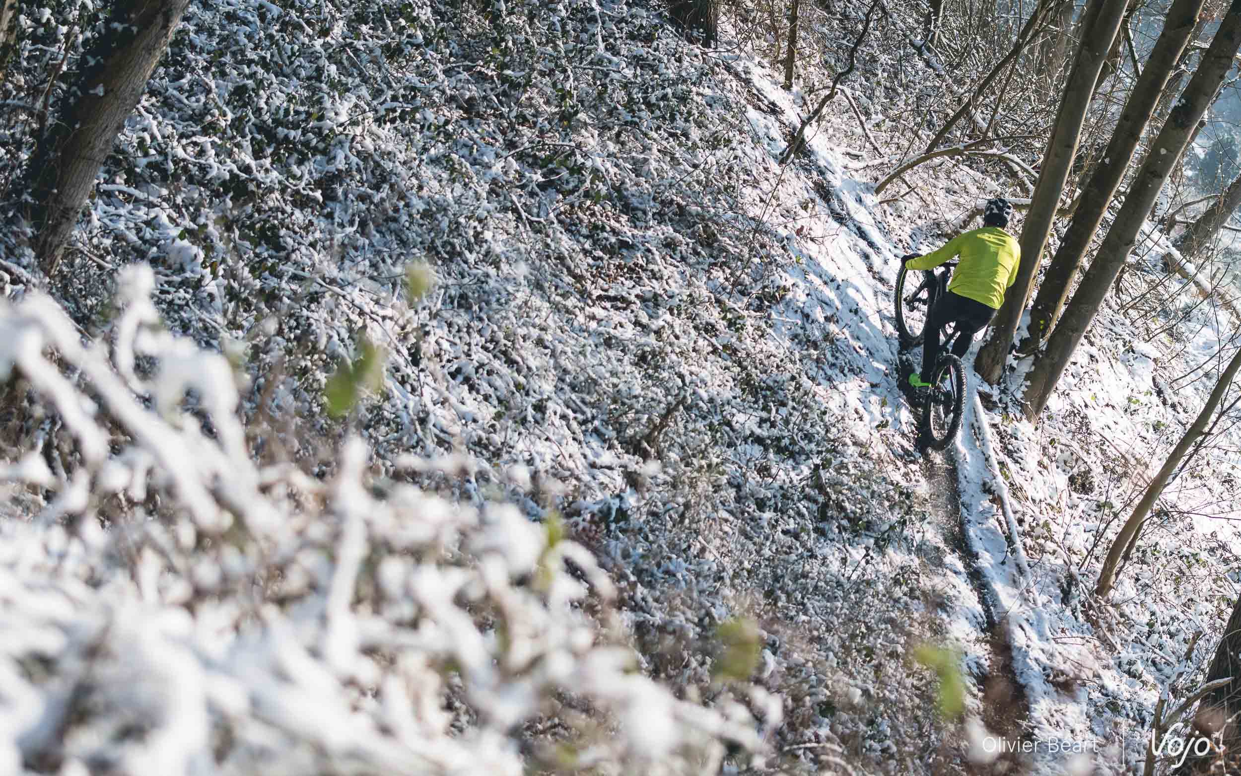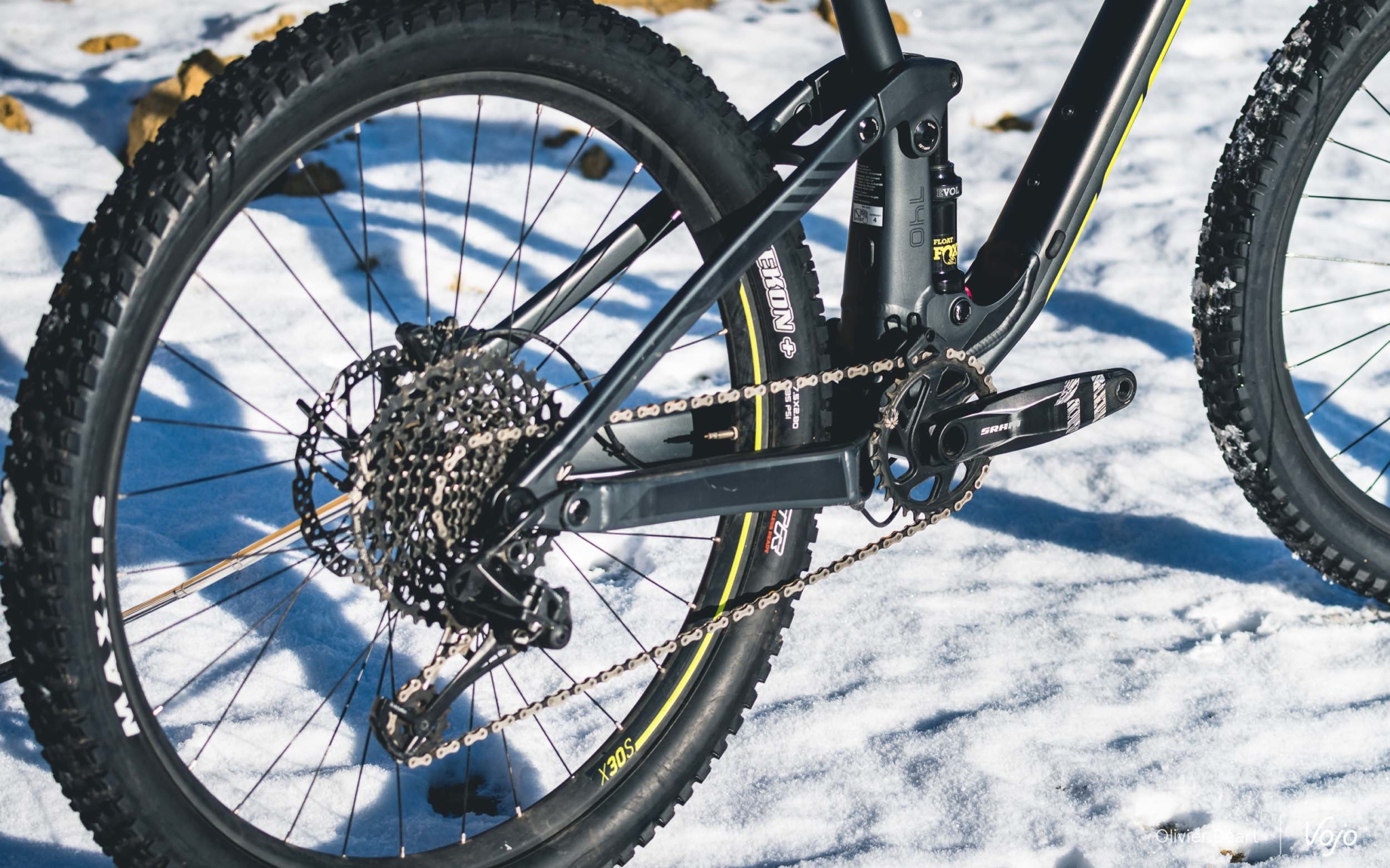 En mode intermédiaire, la suspension reste active et le grip très présent, surtout avec le pneu arrière en 2.8, qui ne s’avoue vaincu que dans la boue collante. Mais dans la rocaille, c’est impossible de le prendre en défaut. Pour revenir à la suspension, l’absence du Fox Nude et de son débattement qui se réduit de 150 à 110mm en position intermédiaire n’est pas vraiment un handicap. On note juste que l’arrière a un peu plus tendance à s’affaisser sur notre version, mais en contrepartie, « notre » position intermédiaire est plus utilisable sur un singletrack plat et flow, où on apprécie d’avoir une compression un peu plus freinée.