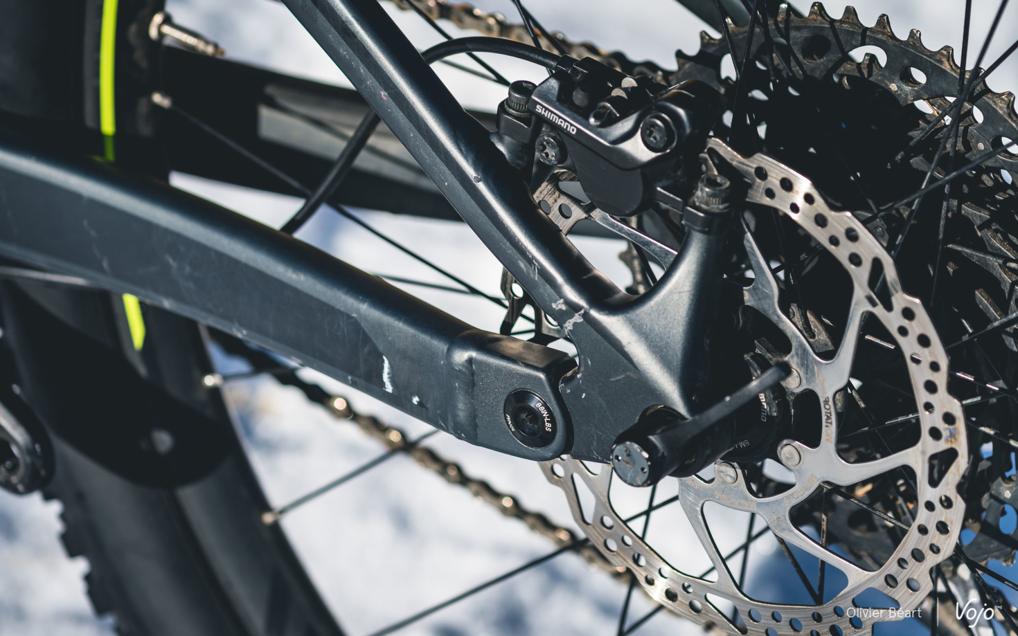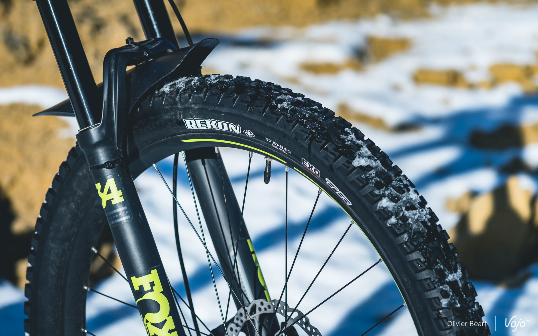 Les freins Shimano MT500 fonctionnent aussi bien que des XT, et les roues Syncros, pas vraiment dynamiques, ont au moins le mérite d’être robustes. Elles ont en tout cas très bien résisté à notre test. Enfin, du côté des pneus, ce sont les inévitables Maxxis Rekon en 2.8 qu’on retrouve. Un choix polyvalent et judicieux, même si à l’avant il perd vite les pédales dans la boue. Mais alors, c’est carrément sur une roue de 29 qu’on vous suggère de passer, plus que sur un autre pneu Plus…