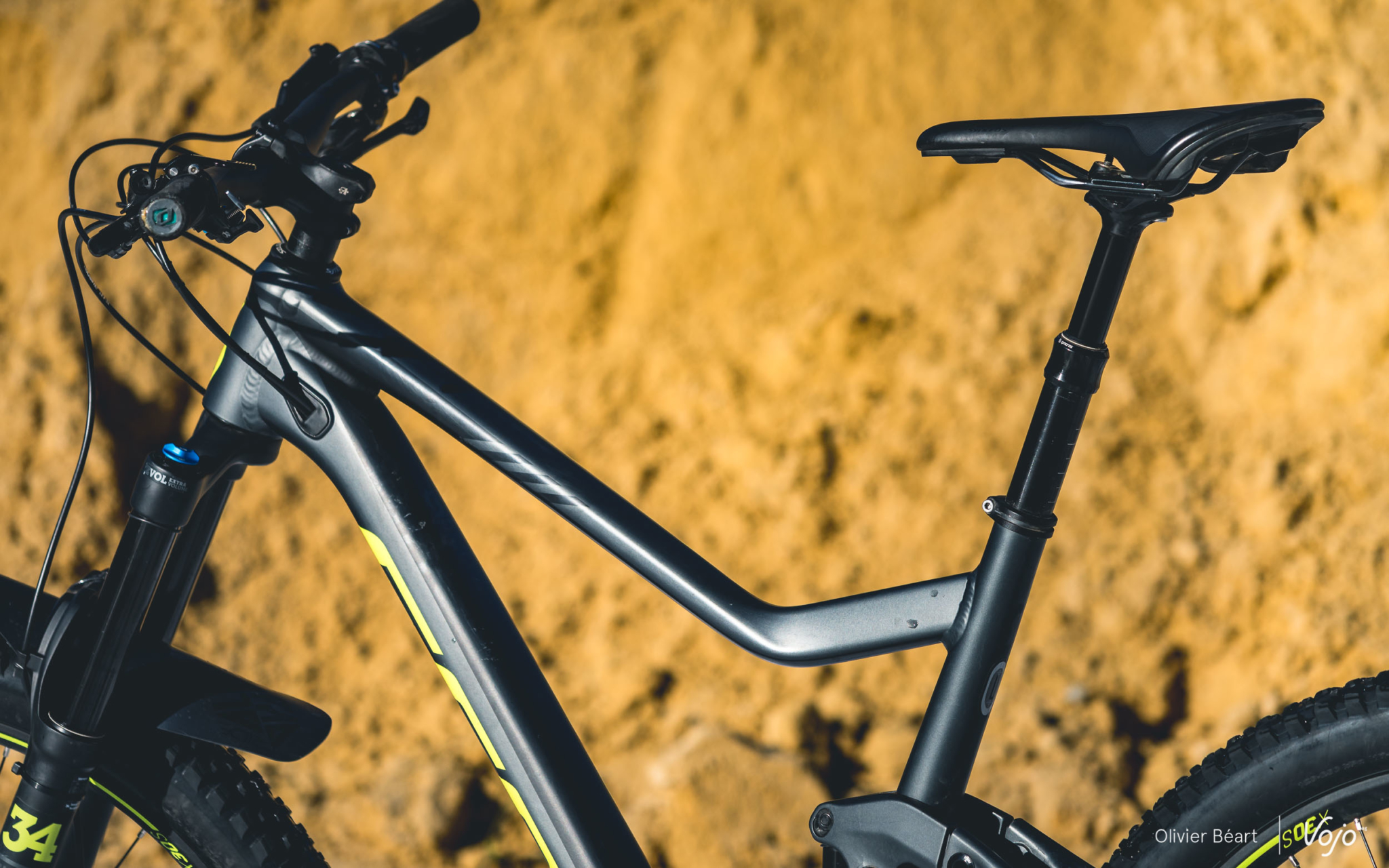 De loin, difficile, voire presque impossible de dire que c’est un alu : merci l’hydroformage ! Le tube de selle et le tube supérieur aux formes très complexes sont là pour l’illustrer. Jamais il y a quelques années cela n’aurait été possible, et ça redonne de sérieuses lettres de noblesse au métal.