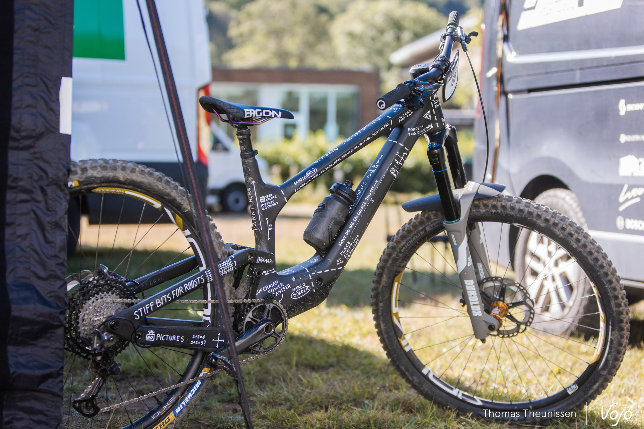 Rappelons aussi que le team avait déjà expérimenté un prototype composé d’un cadre de Gambler transformé en enduro lors de la saison 2021 des feu EWS. « Cet essai avait été couronné de succès sur les spéciales, mais c’était un mauvais pédaleur ! En 2022, on est donc reparti sur base du Ransom que l’on a équipé d’un Rocker Link modifié », continue Clément. On se souviendra que Patrick Lüthi, ingénieur de la marque et pilote d’enduro, s’était notamment imposé au général du championnat national suisse d’enduro à son guidon.