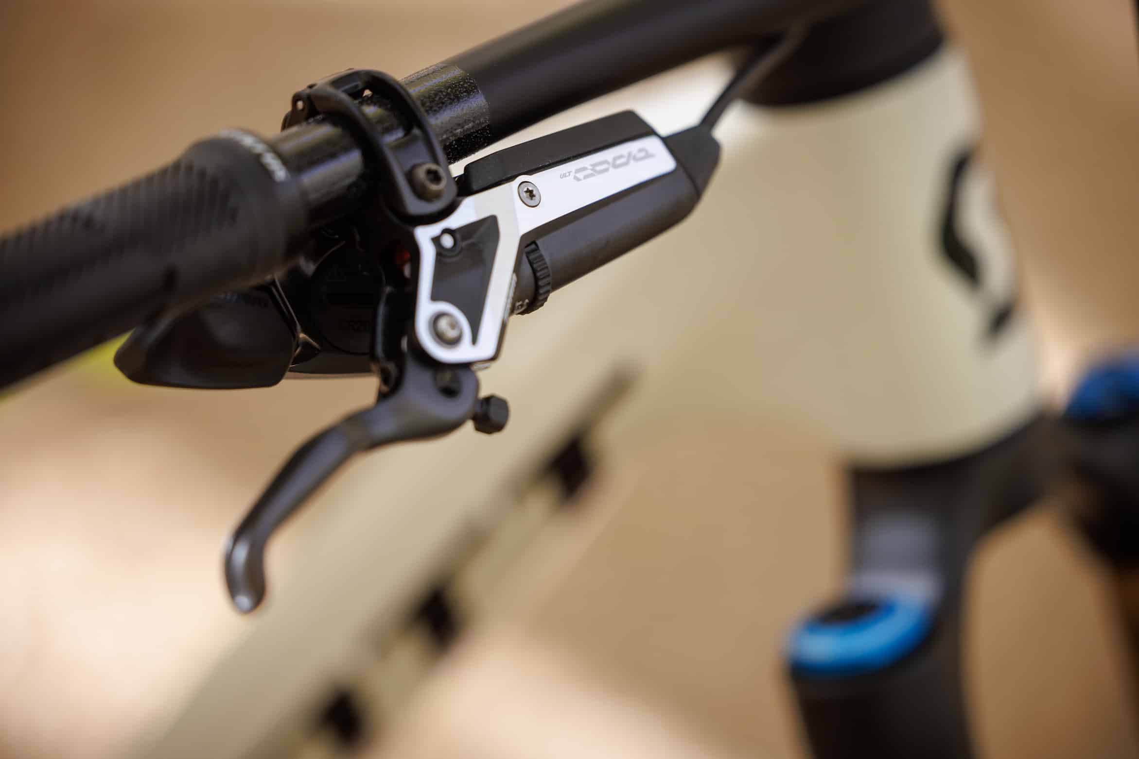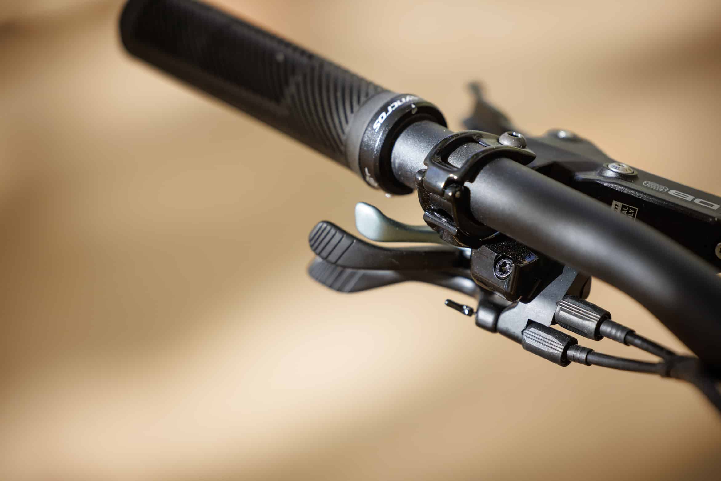Le freinage est également assuré par Sram avec une paire de Code Ultimate Stealth 4 pistons et de disques HS2 de 200 mm à l’avant comme à l’arrière (cf : Test nouveauté | Freins Sram Level et Code Stealth : changer sans changer).