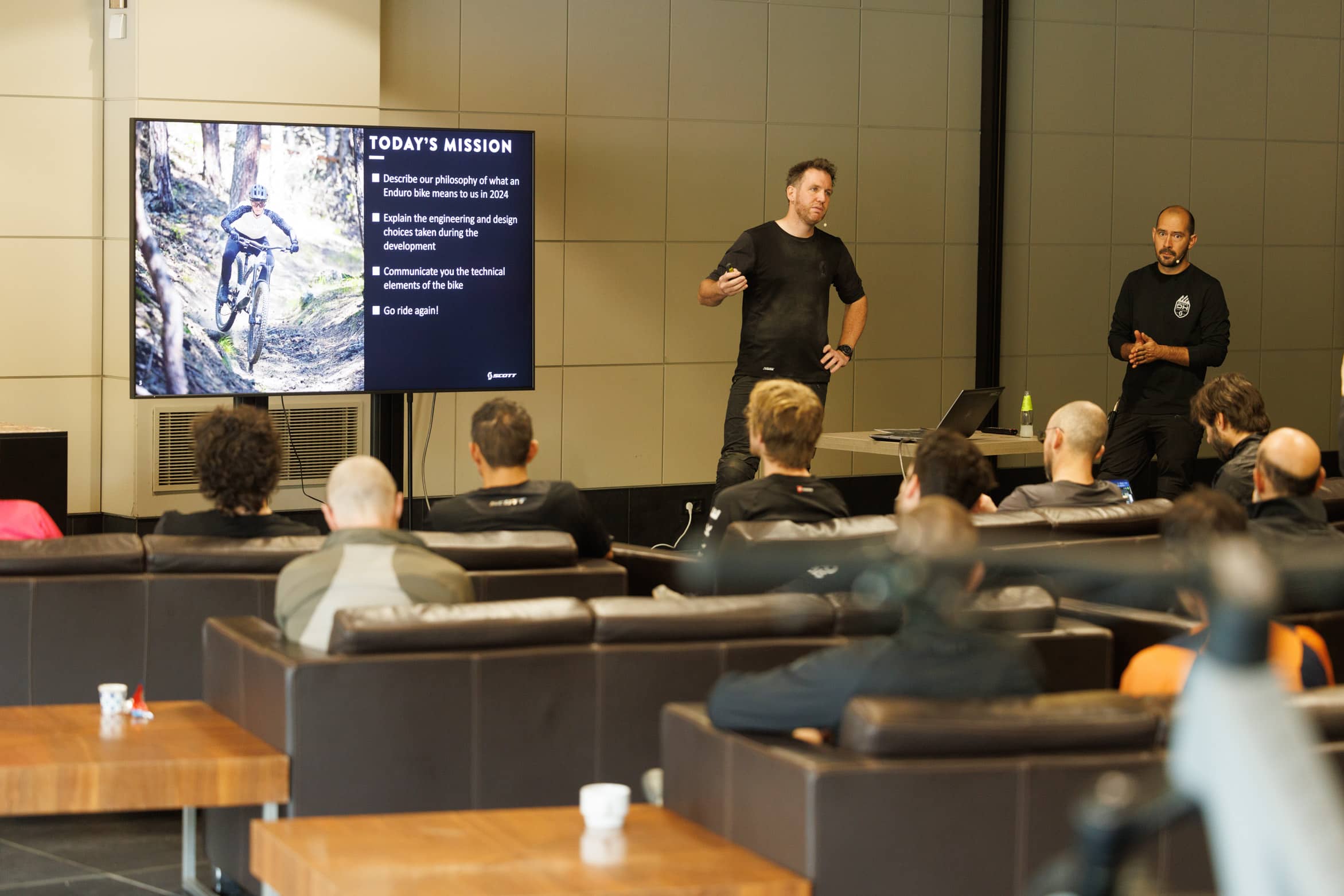 Pour 2024, la marque de Givisiez a décidé de métamorphoser complètement son Ransom dans le but de créer le châssis d’enduro de référence des prochaines années. « Nous avons utilisé le Ransom ancienne génération comme base, tout en désirant l’optimiser pour qu’il réponde à la pratique de l’enduro moderne, mais également par rapport aux feedbacks de nos athlètes du team, de la presse spécialisée et aussi de l’équipe interne », explique Clément Martin, le chef produit derrière ce Ransom, et Kai Wheeler, ingénieur en chef (à gauche sur la photo).