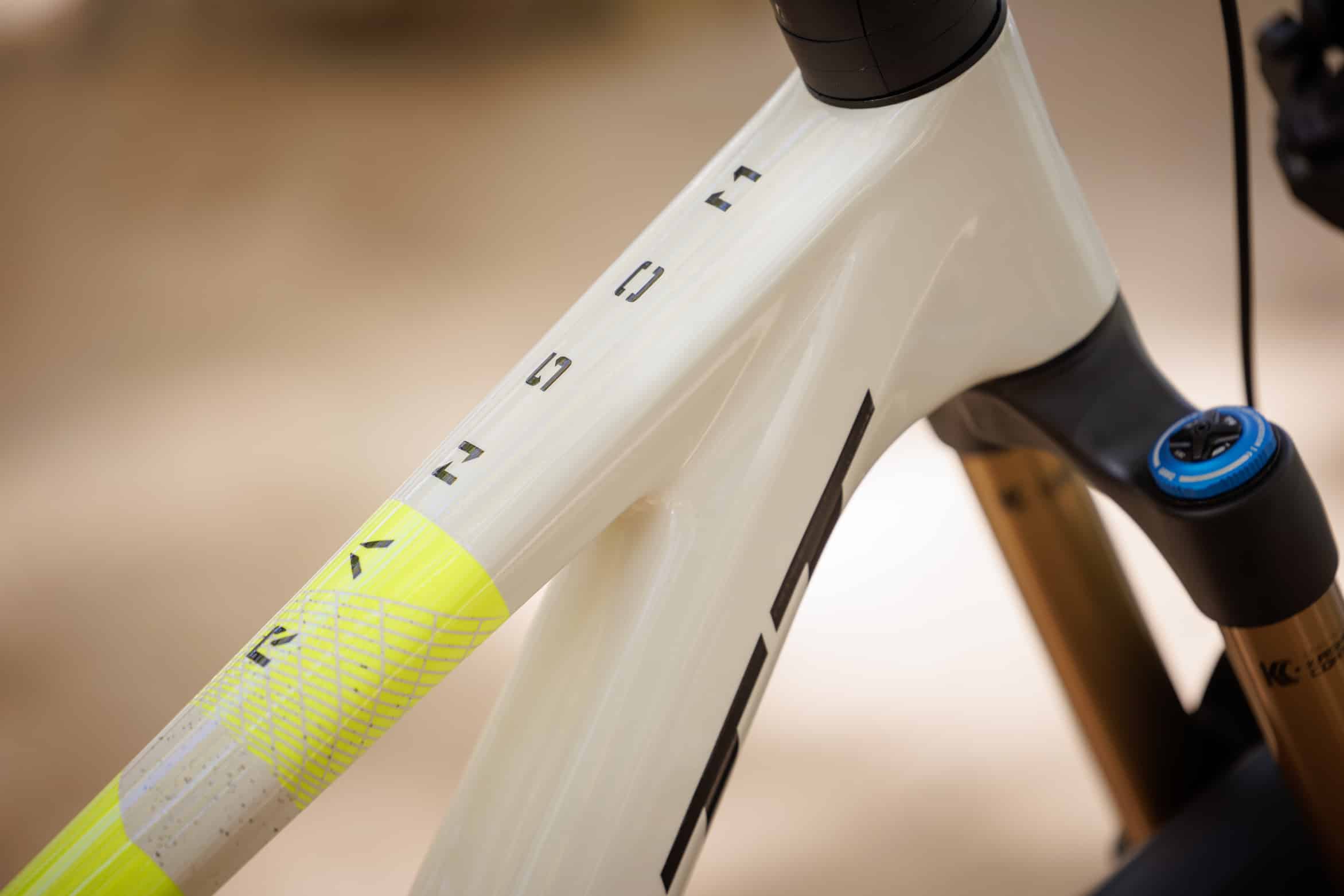 Comme d’accoutumée désormais, l’orientation, la répartition et le choix des fibres de carbone sont faites en fonction des zones de contraintes du cadre. On peut ainsi observer que la zone du boitier de pédalier/ de l’amortisseur est renforcée, alors que les zones au milieu des tubes sont plus fines. Il convient aussi de remarquer qu’au sein de la gamme, seul le luxueux modèle 900 RC bénéficie d’un cadre complètement en carbone HMX, à savoir le carbone le plus haut de gamme de la marque. Pour le reste des versions, le triangle avant est en carbone HMX tandis que les bases arrière sont en aluminium.