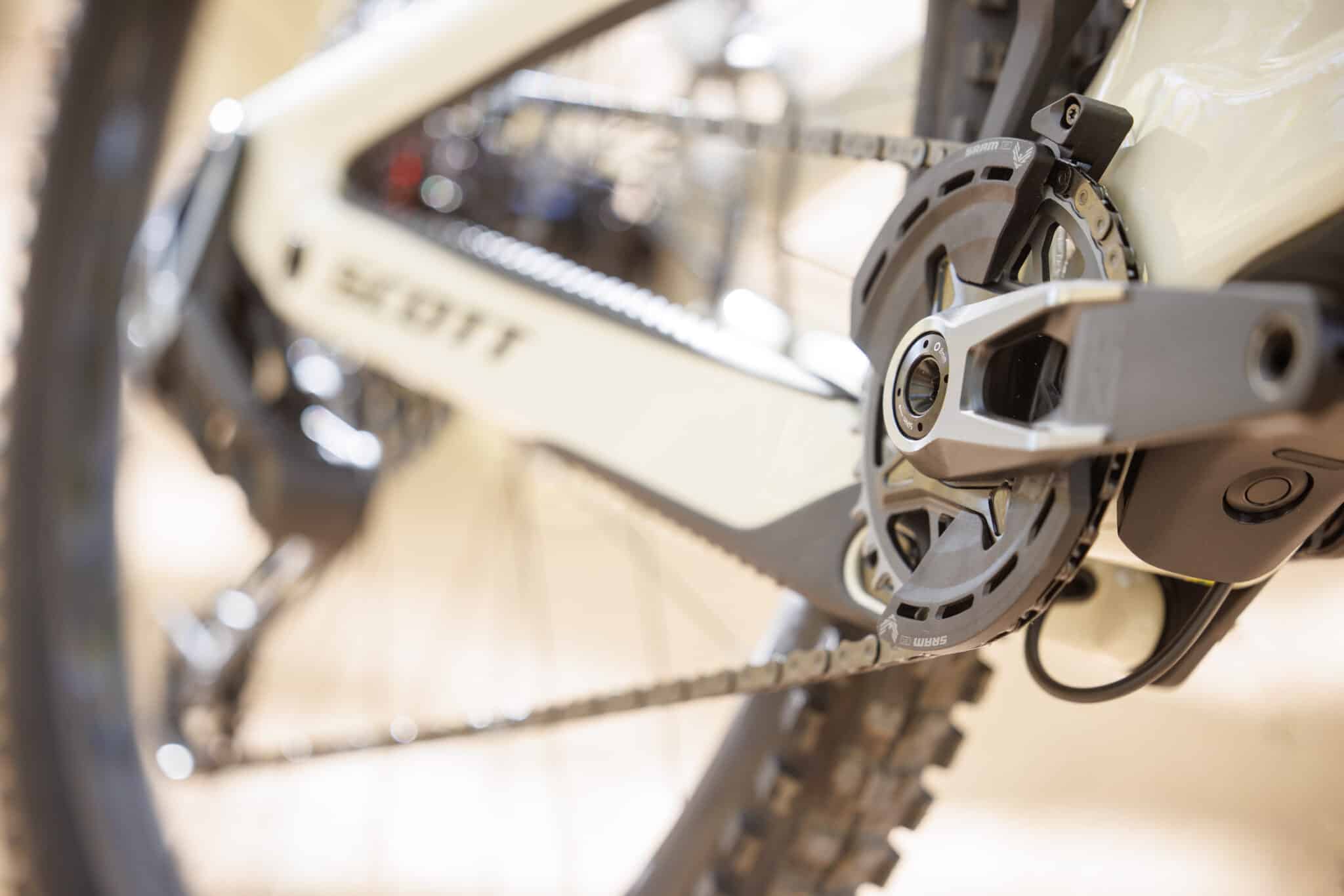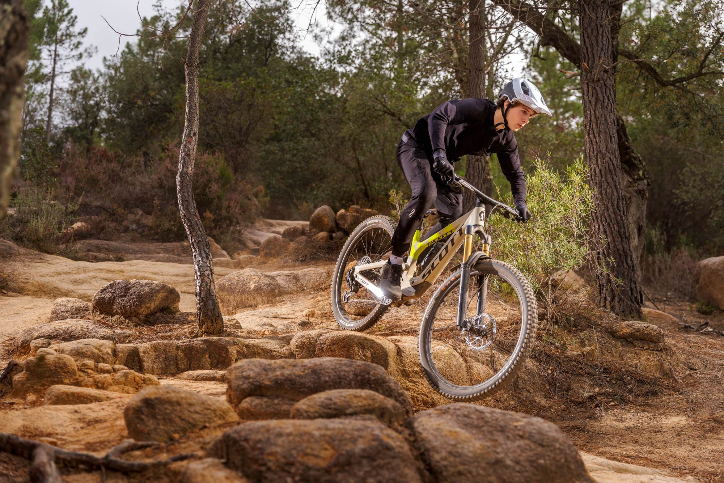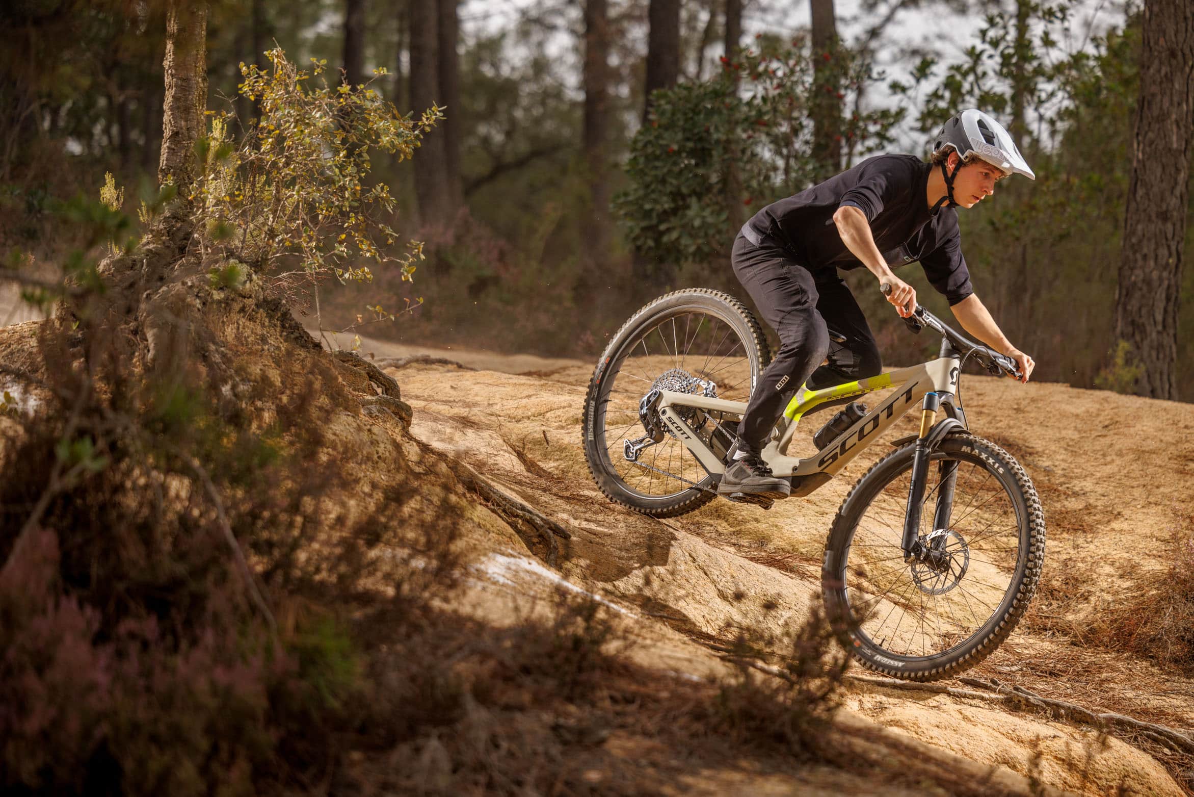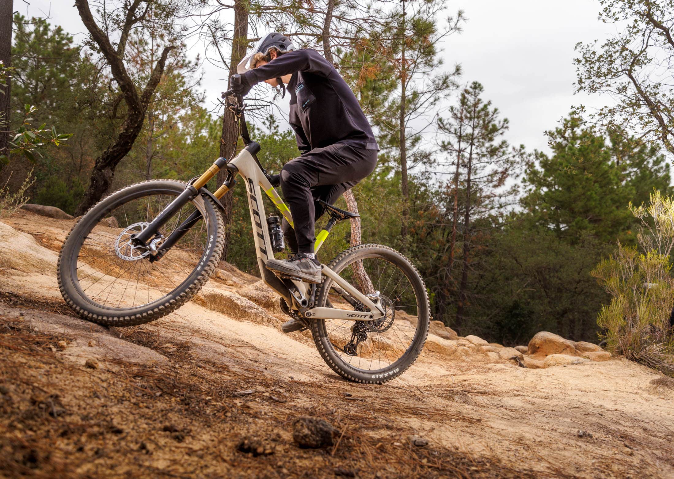 Si le châssis se veut aussi capable qu’un vélo de descente dans la pente, toute la mission pour Scott était de concevoir un châssis autour qui demeure léger et efficace, permettant de rallier les différentes spéciales à la pédale.