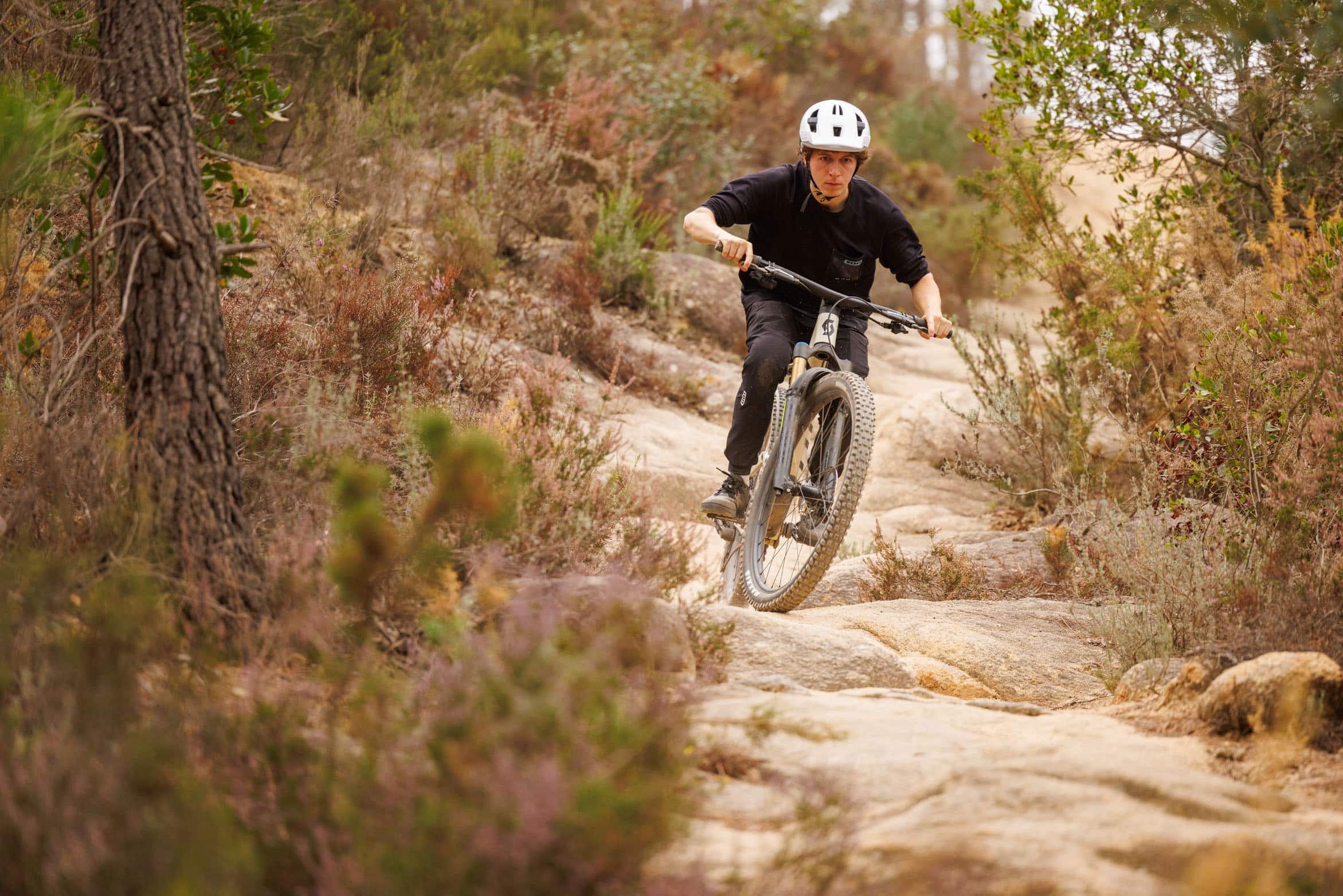L’arme secrète de ce Ransom pour offrir un pédalage si efficace ? Le TracLoc, permettant d’osciller entre une position intermédiaire offrant le grip nécessaire pour les montées techniques tout en limitant l’effet de pompage de la suspension, et la position fermée permettant de monter efficacement sur les chemins larges. Dans cette version haut de gamme, notre modèle de test pointe tout juste à 15 kg en taille M. Ce poids contenu pour une machine de son espèce et la bonne position de pédalage en font un bon grimpeur. Surprise.