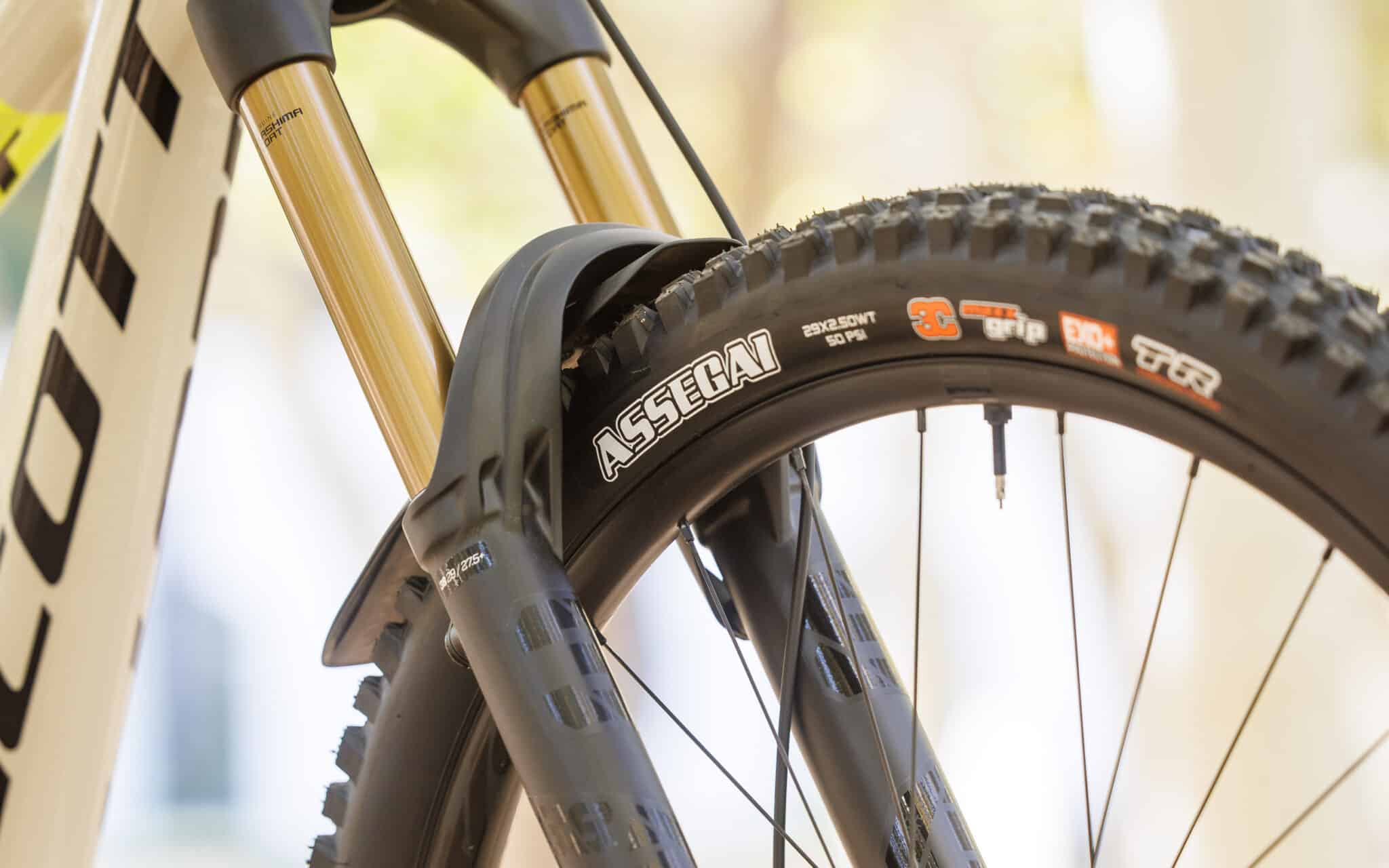 - Pneus Maxxis Assegai (avant) et Maxxis Dissector (arrière)