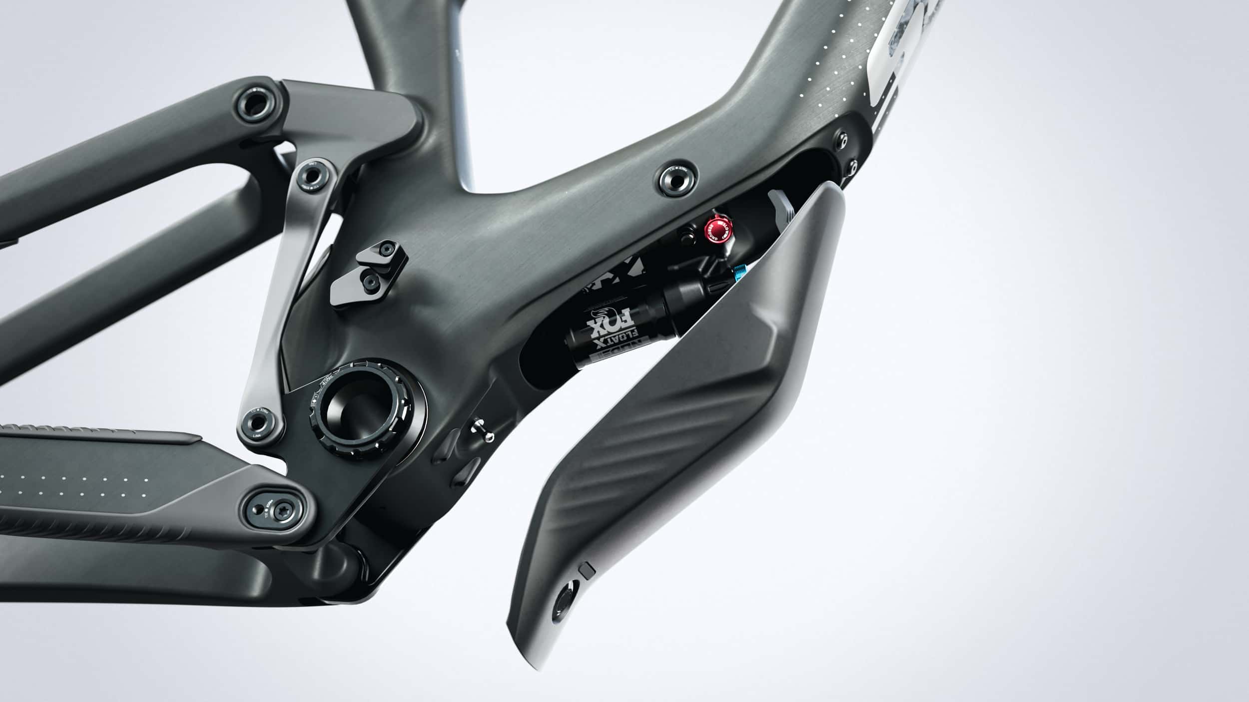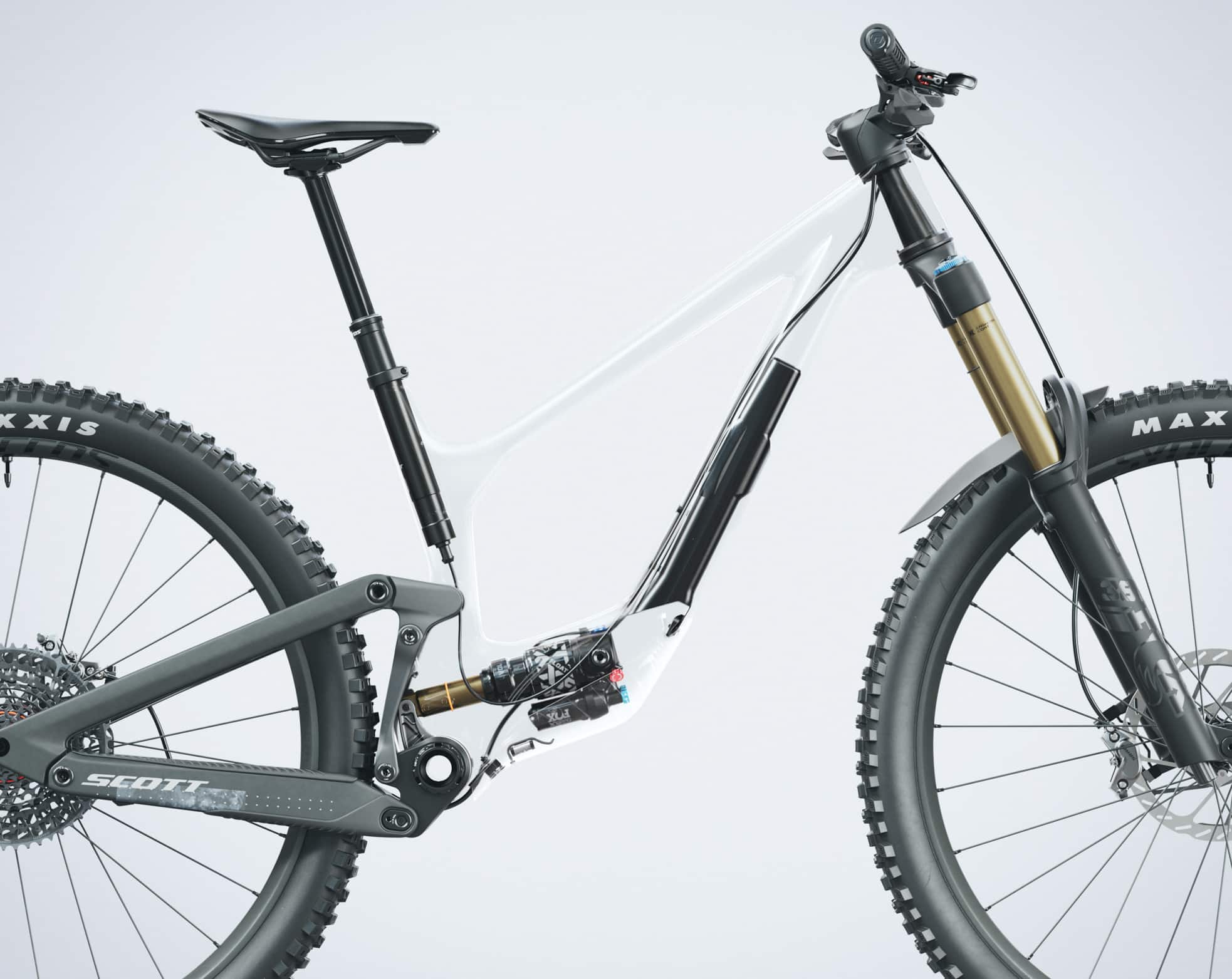Ces différentes étapes ont mené au développement du prototype que l’on avait aperçu lors de la manche EDR de Châtel (Cf. Spyshot | Le nouveau Scott Ransom aperçu à Loudenvielle) préfigurant ce modèle de série. À savoir, un châssis entièrement en carbone, en roues 29 pouces ou « mulet « au choix, développant 170mm de débattement avant/arrière et surtout… bénéficiant de l’intégration de l’amortisseur au sein du cadre.